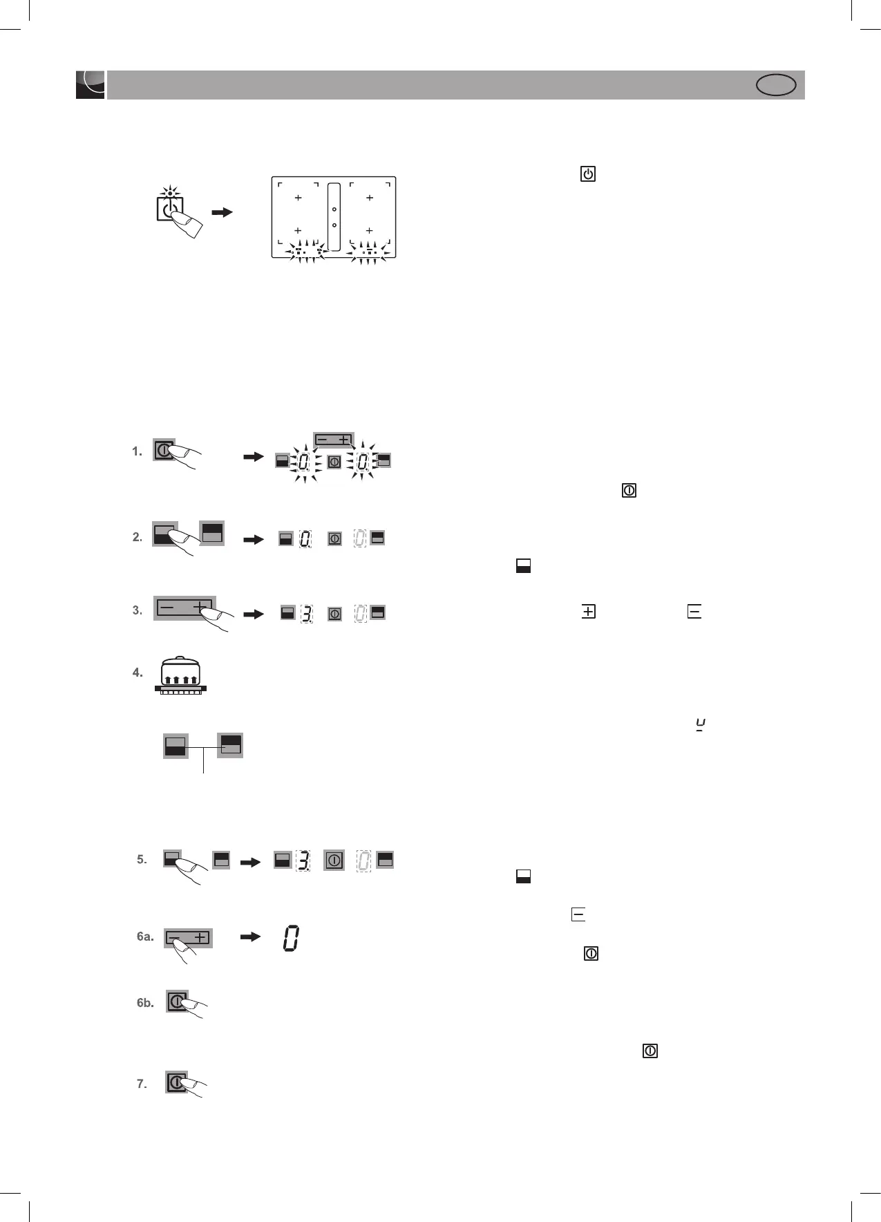 1. Ein-/Aus-Taste Kochfeld solange betätigen (ca. 1 Sek.),
