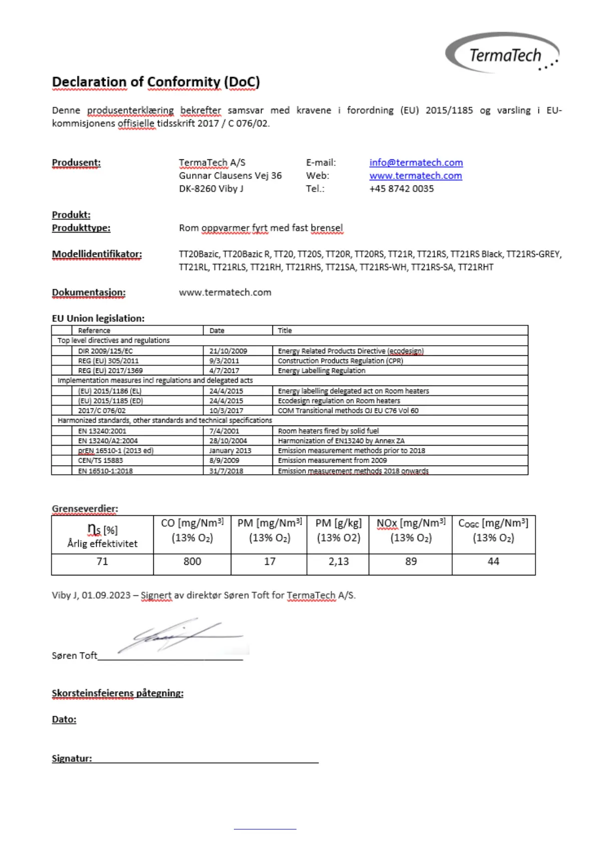 TermaTech A/S, Gunnar Clausens Vej 36, DK-8260 Viby J www.termatech.com 21-12-2023 LP Item no. 99-274