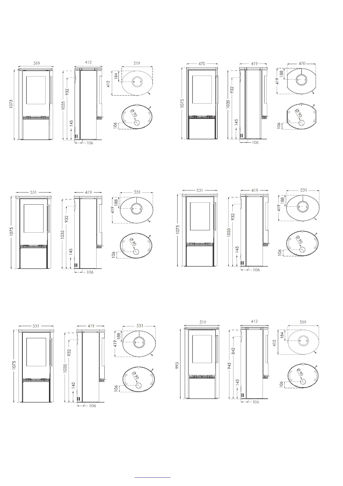 All measurements are WITHOUT adjustable feet / Toutes les dimensions sont données SANS pieds réglables /Alle