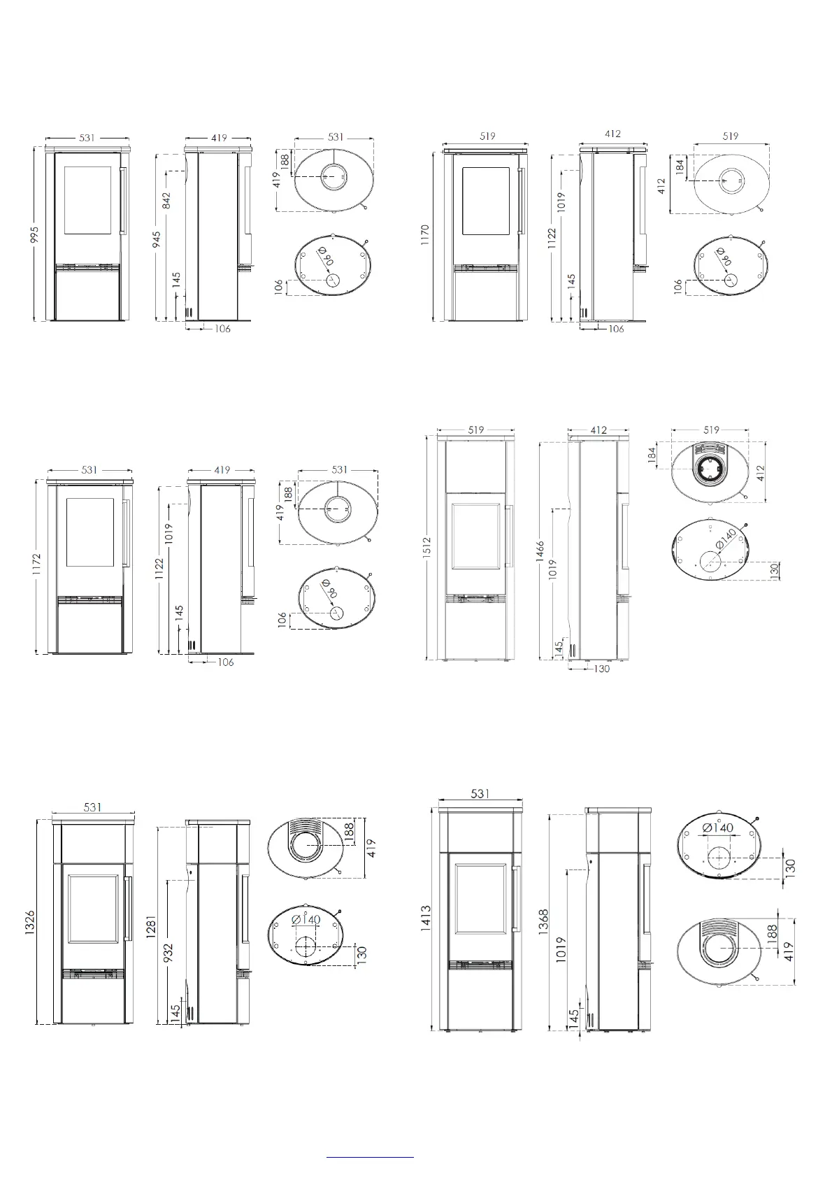 All measurements are WITHOUT adjustable feet / Toutes les dimensions sont données SANS pieds réglables /Alle