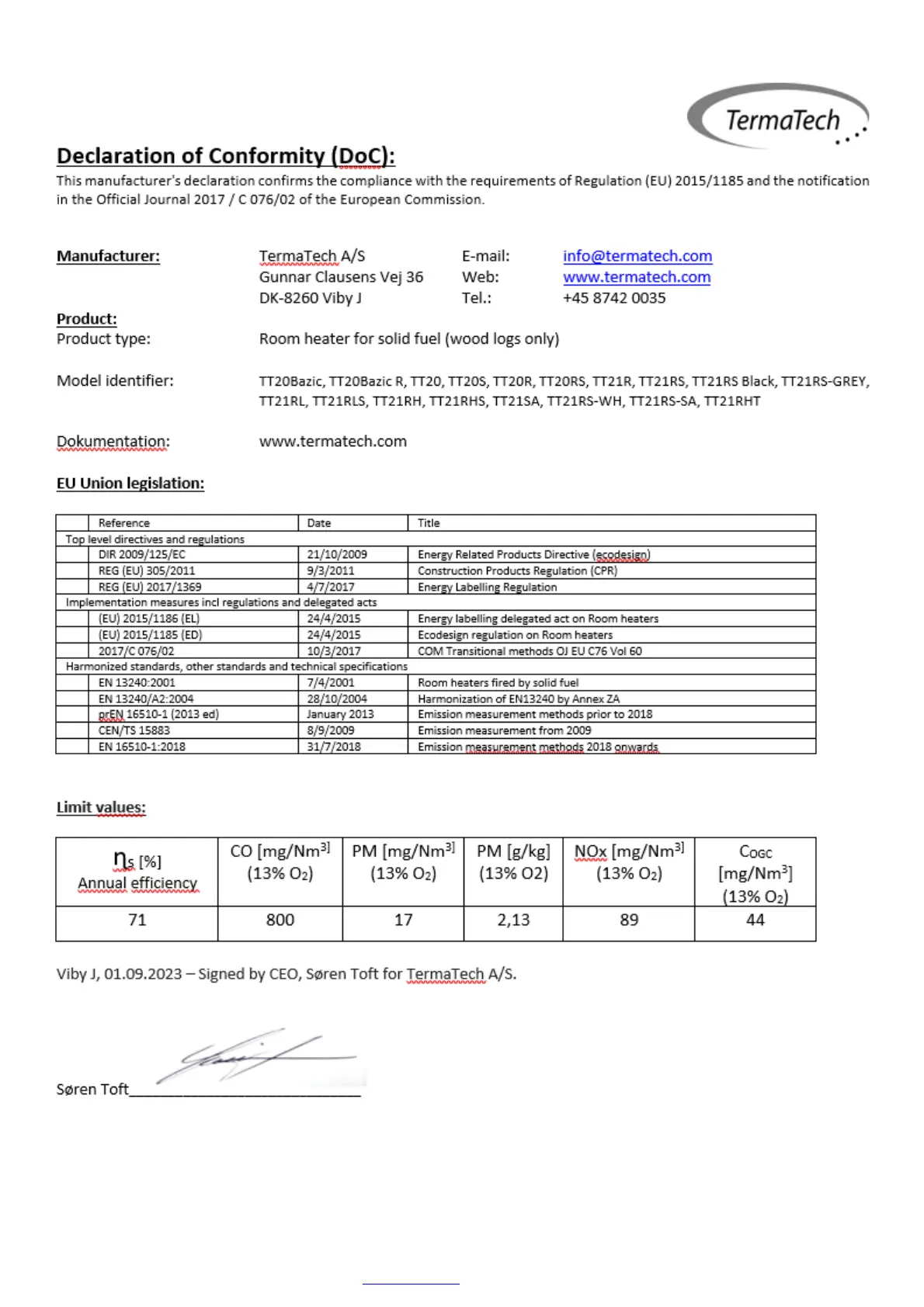 TermaTech A/S, Gunnar Clausens Vej 36, DK-8260 Viby J www.termatech.com 21-12-2023 LP Item no. 99-274