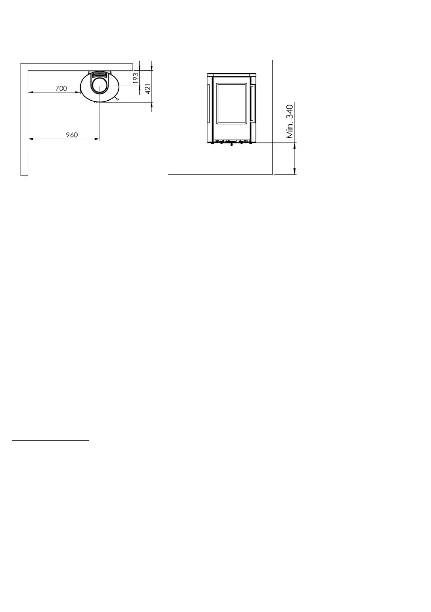 Beachten Sie bitte: Die Unterkante des Ofens muß mindestens 340 mm über dem Fußboden sein.