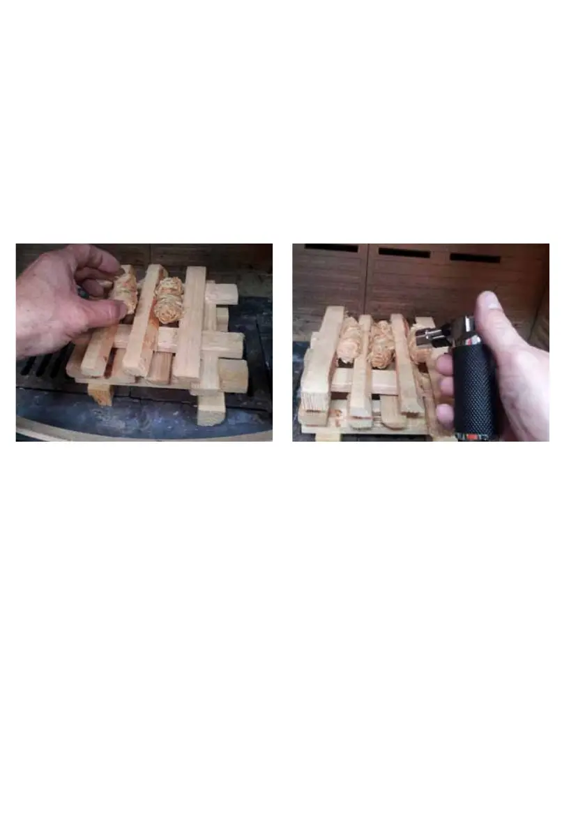 Posez un ou deux allume-feux sur le bois. Bois d’allumage voir la section 5.1.