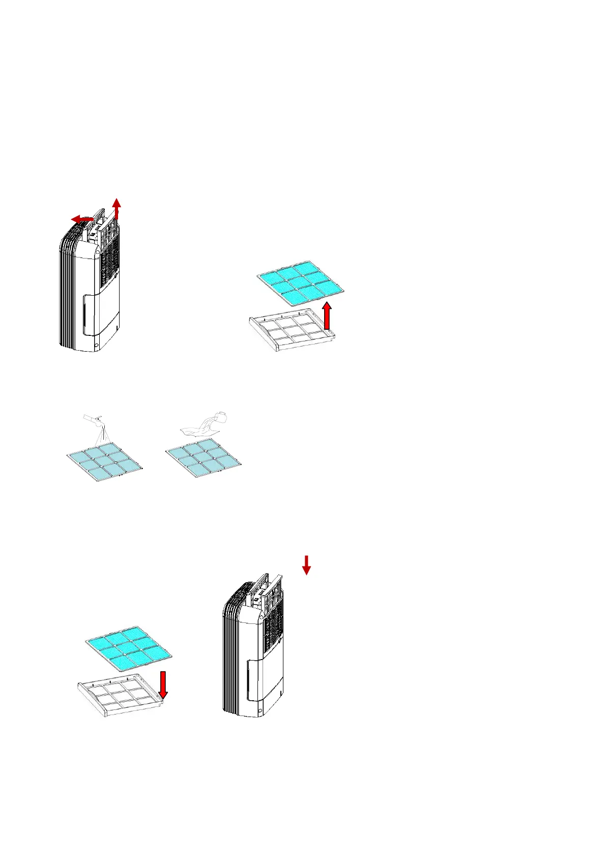 Poista ilmansuodattimen pinnalle kertynyt lika kevyesti imuroiden. Jos suodatin on erityisen likainen, pese lämpimällä