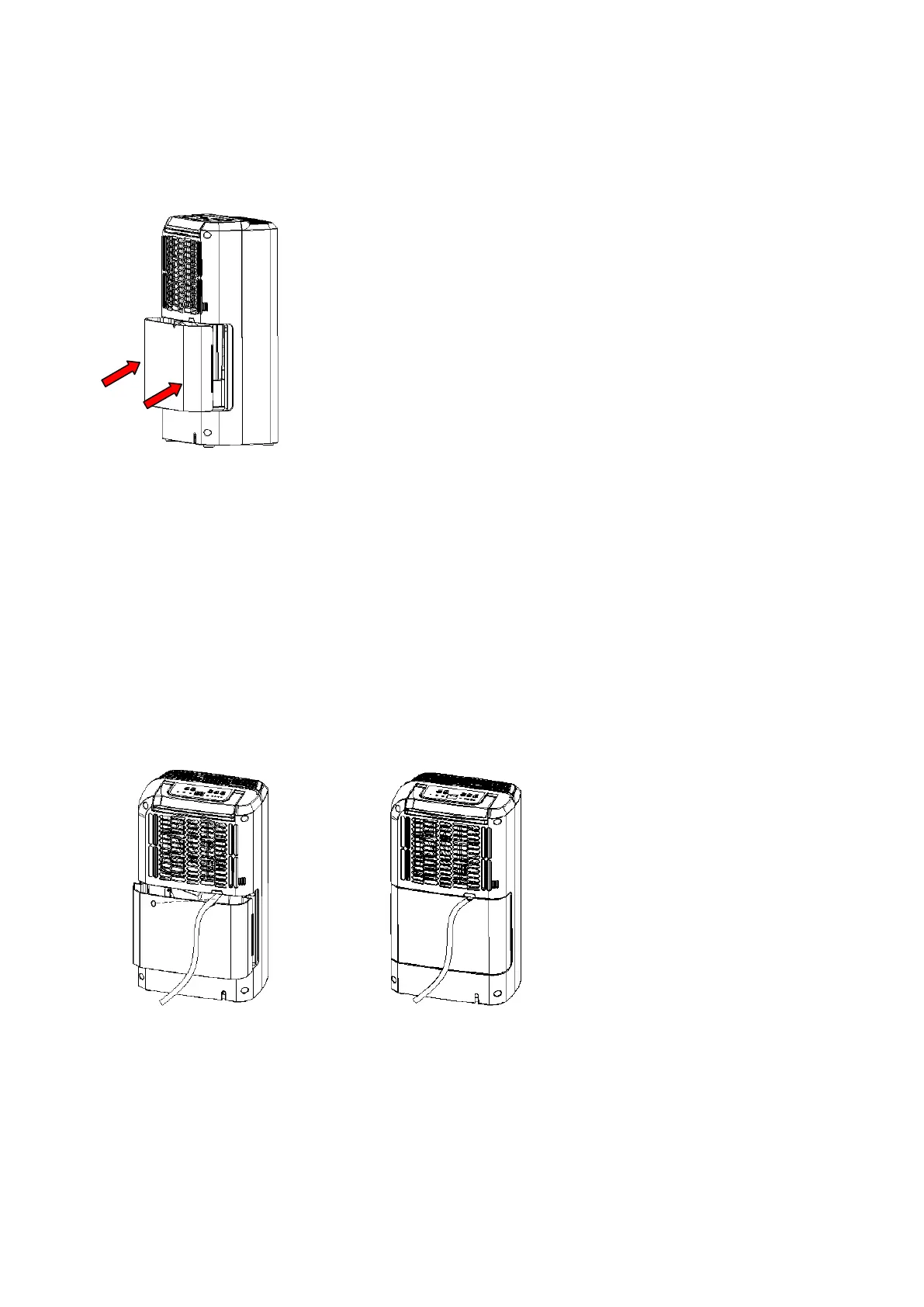 (på mellomliggende plate), ta grep fra siden av vannbeholderen, installer den på plass, og ordne avløpsrøret.