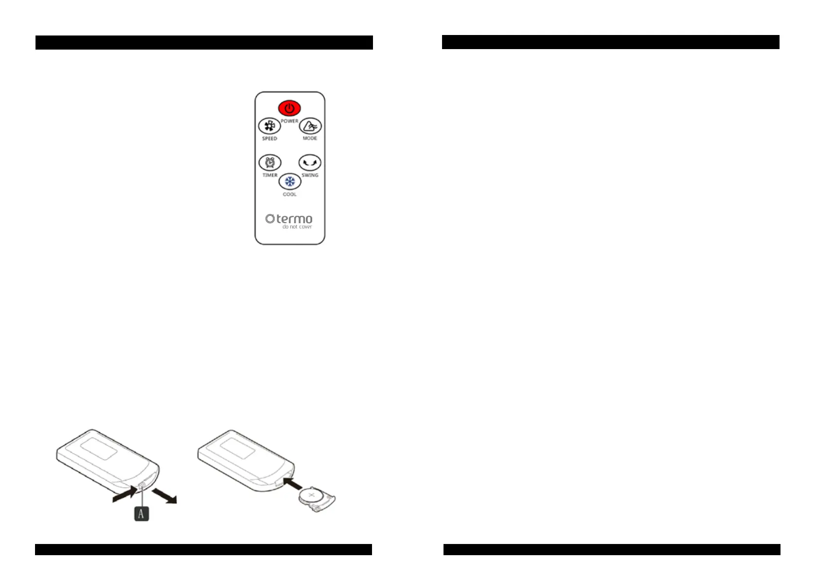1. Vend fjernbetjeningen om, og tryk på tappen A - som ses til højre.