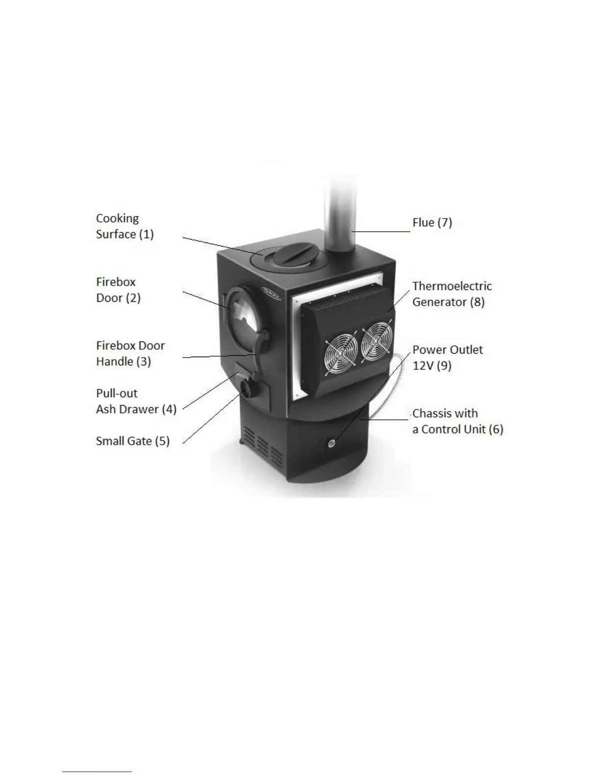 Picture 2.General view and components of the stove INDIGIRKA-2