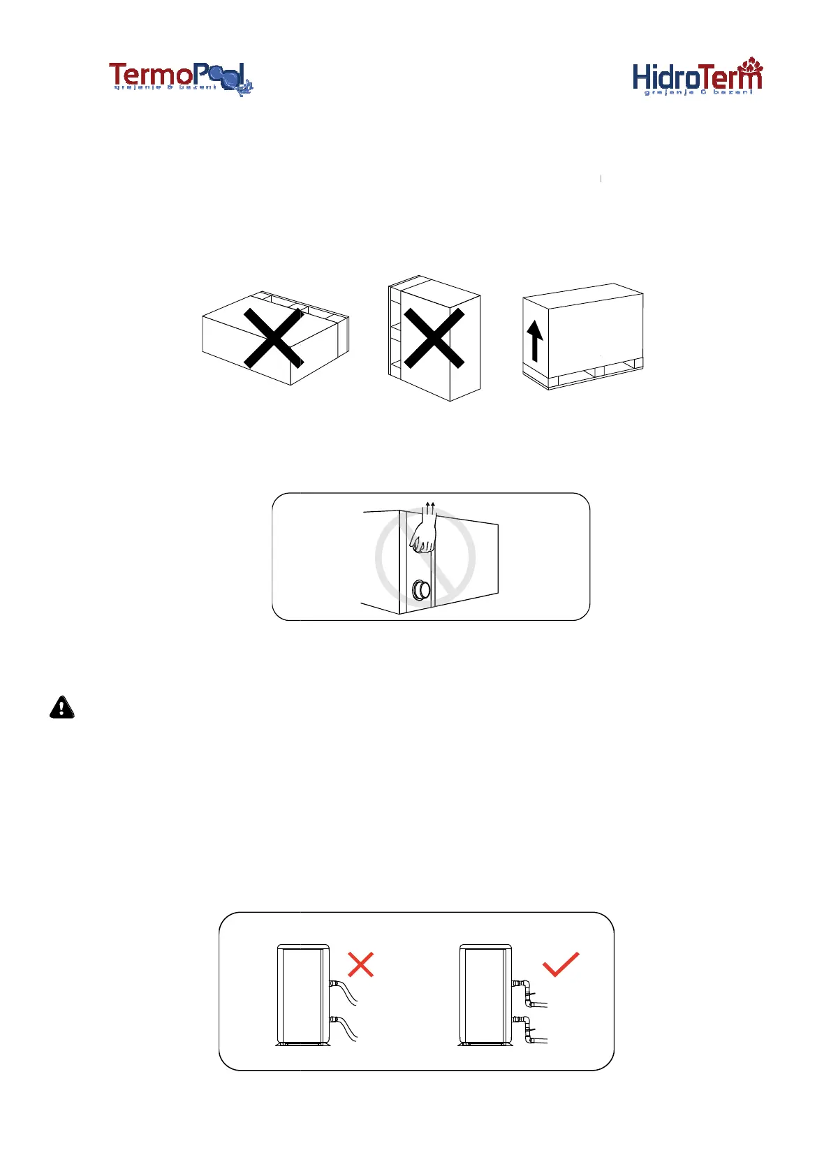 štenju ili pomeranju toplotne pumpe, toplotna pumpa treba da bude u