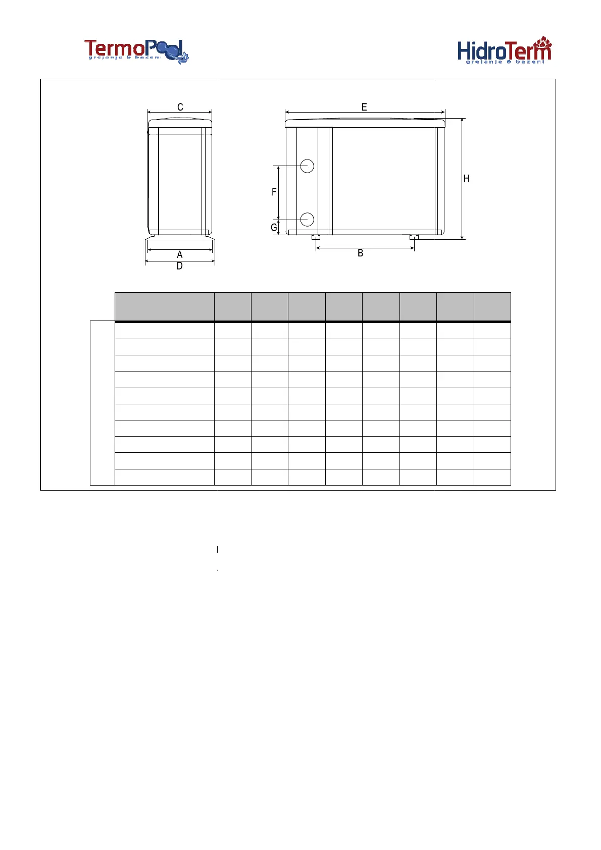specifikacije pumpe: pogledati Tehnički parametar, M