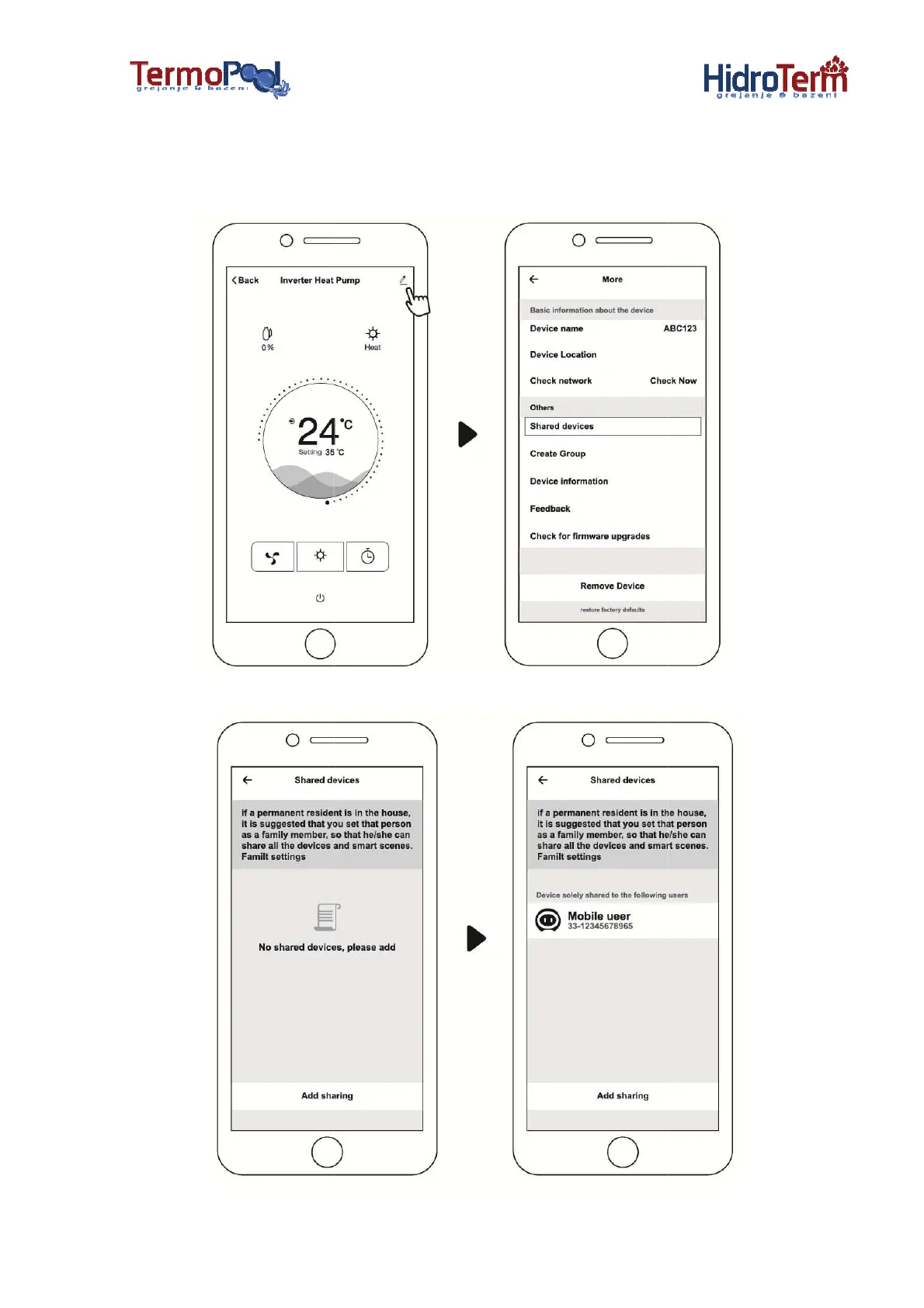 Nakon vezivanja,ako i članovi vaše porodice žele da kontrolišu uređaj,