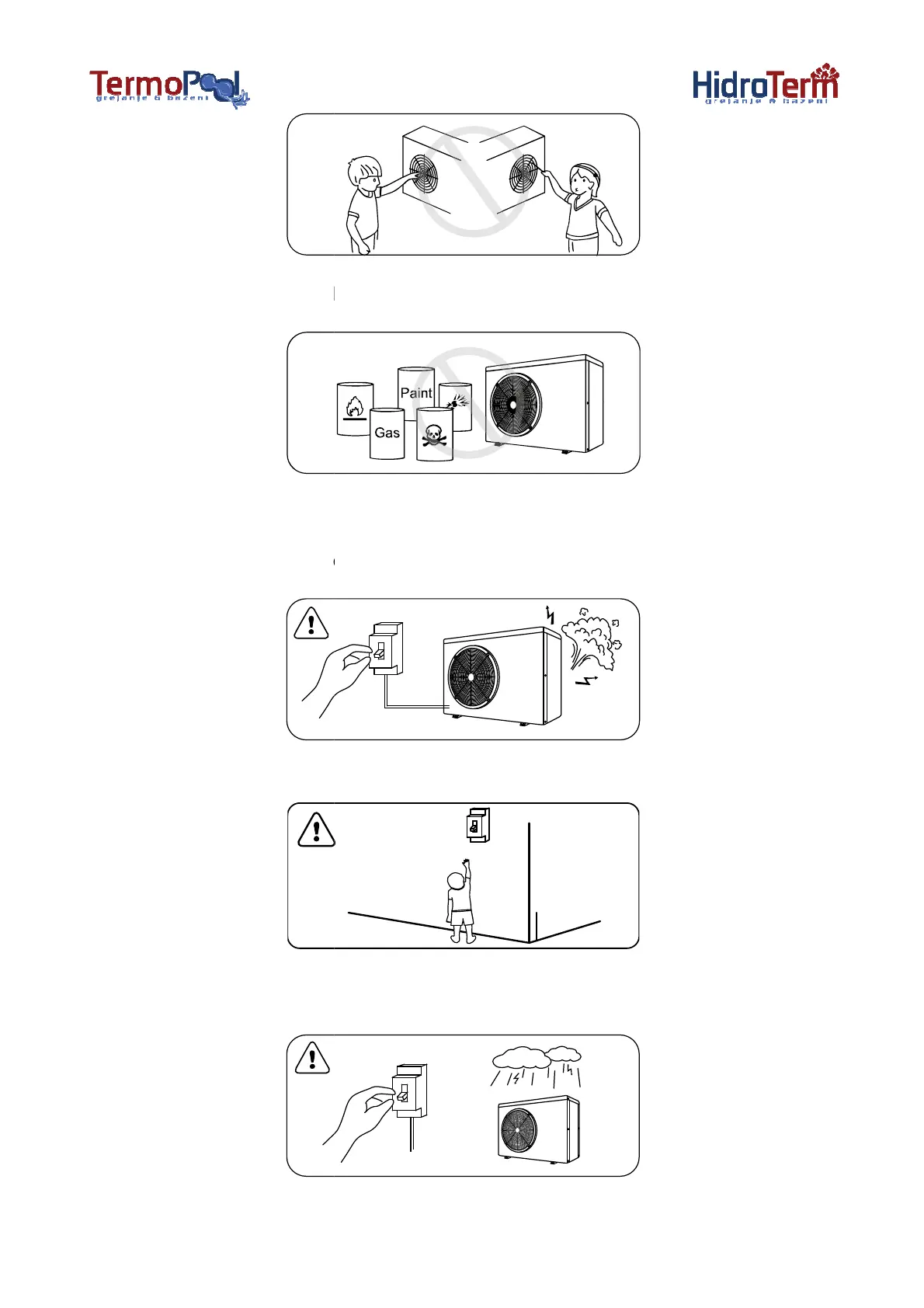 1.4.5. Don’t use or store combustible gas or liquid such as thinners, paint and fuel to avoid fire.