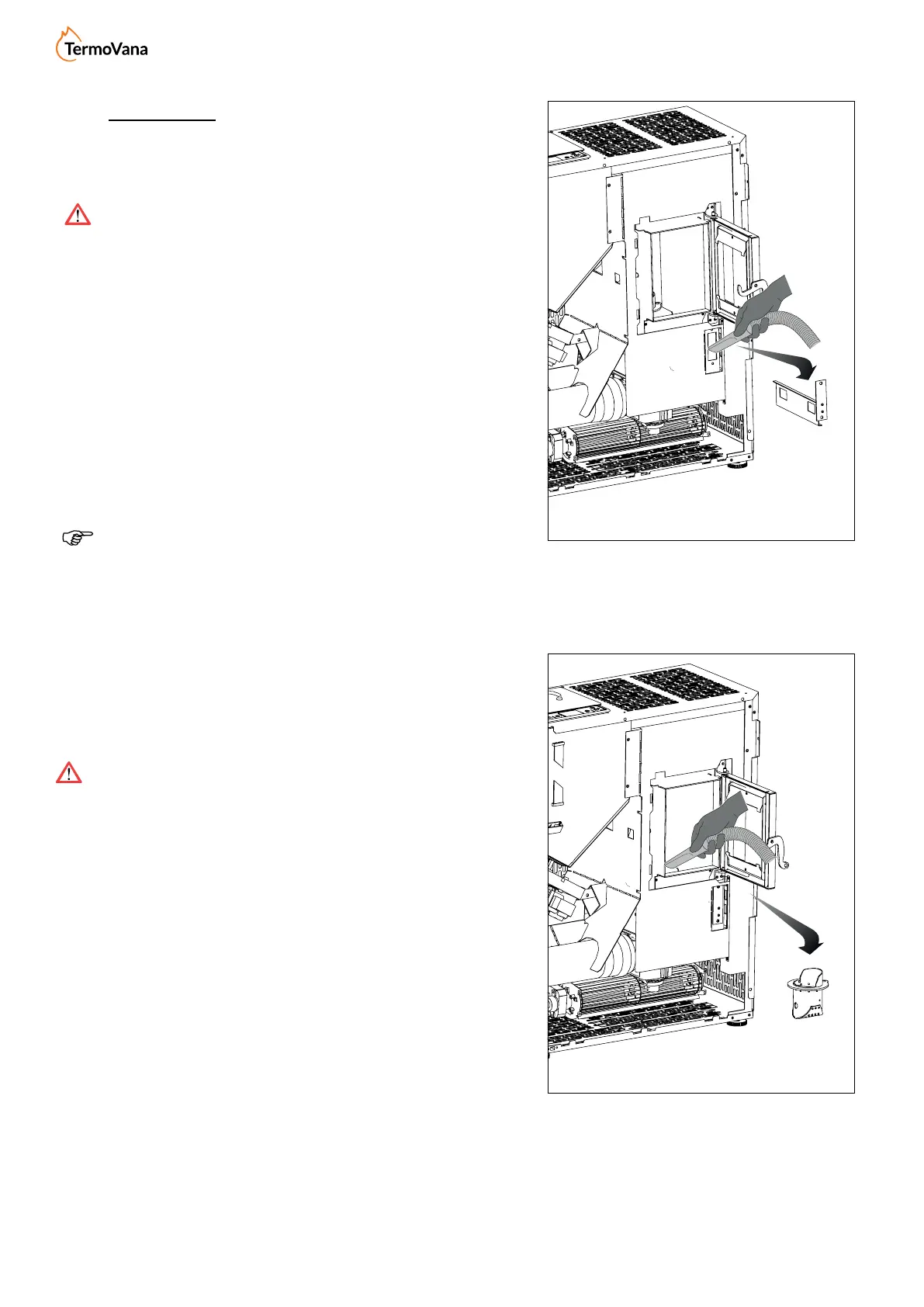Extraer el cajón de cenizas y aspirar con un adecuado