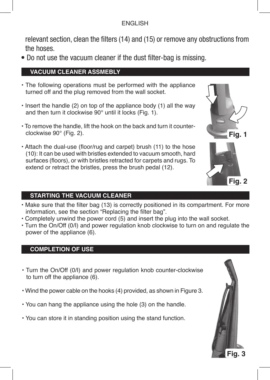 • Do not use the vacuum cleaner if the dust lter-bag is missing.