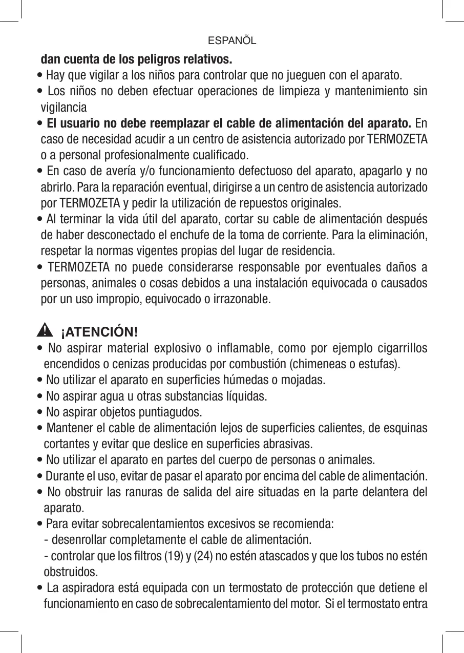 • La aspiradora está equipada con un termostato de protección que detiene el