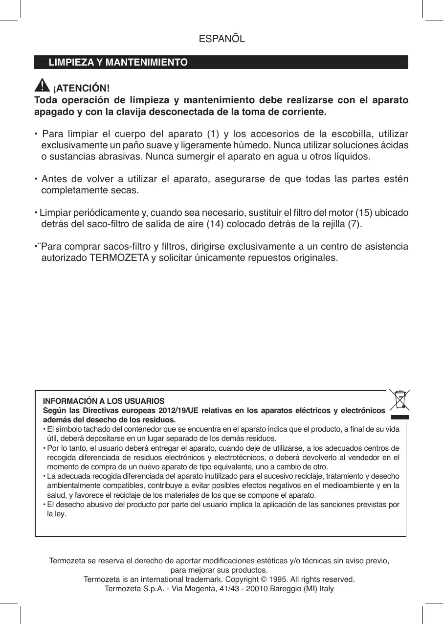 autorizado TERMOZETA y solicitar únicamente repuestos originales.