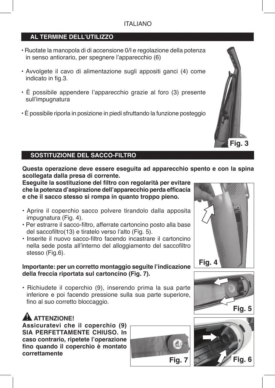 del saccoltro(13) e tiratelo verso l’alto (Fig. 5).