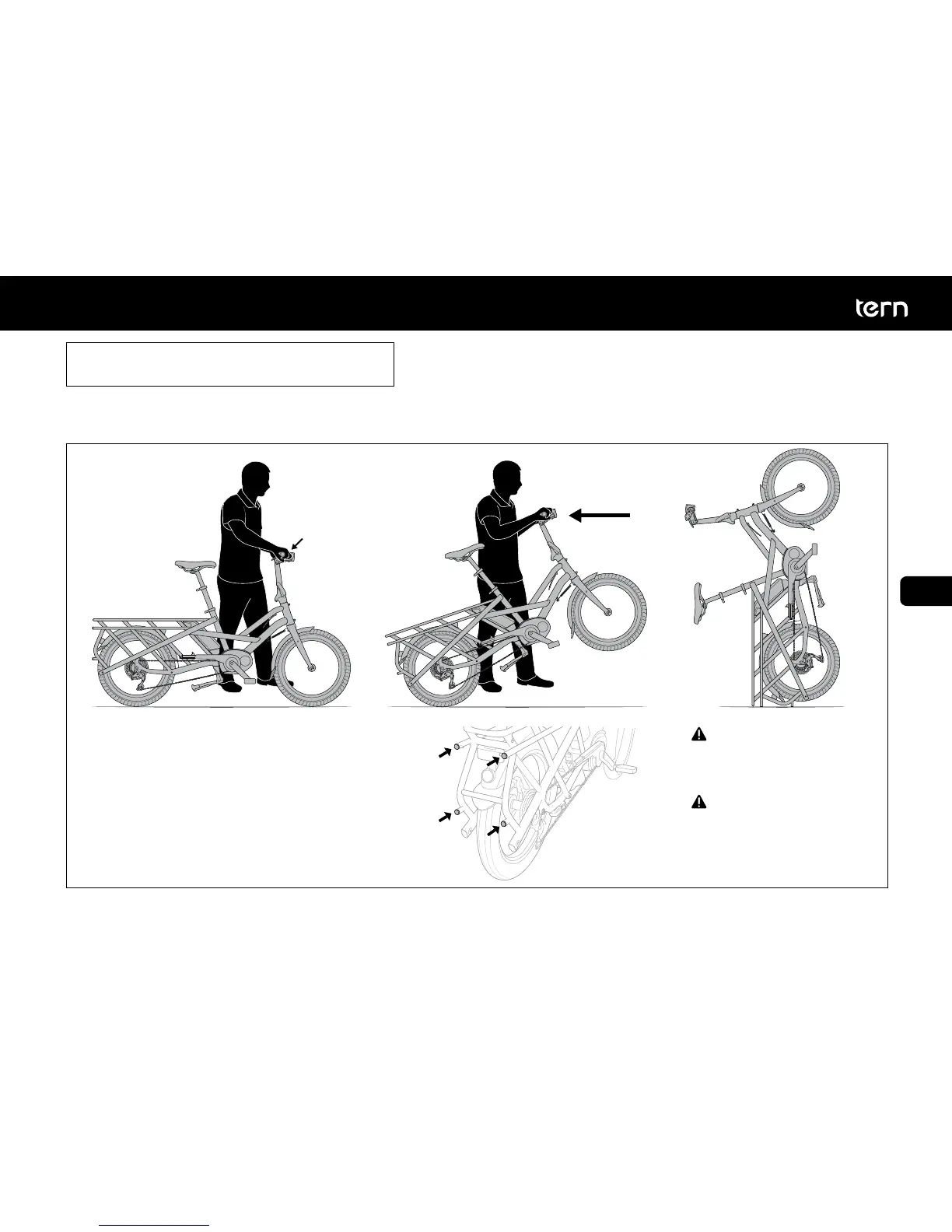 The Tern GSD is designed to stand on four contact points on the rear rack. In this configuration, the bike takes up a small footprint, which is very