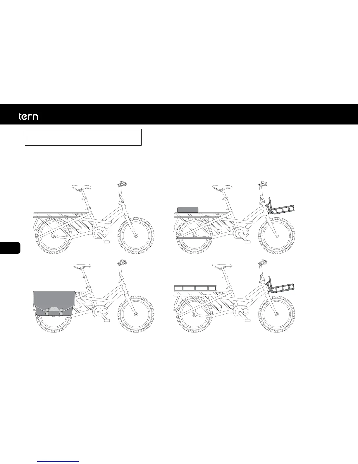 Tern ofrece una línea completa de accesorios de GSD para adaptarse a sus diferentes escenarios de uso, incluyendo mochilas, alforjas, racks,