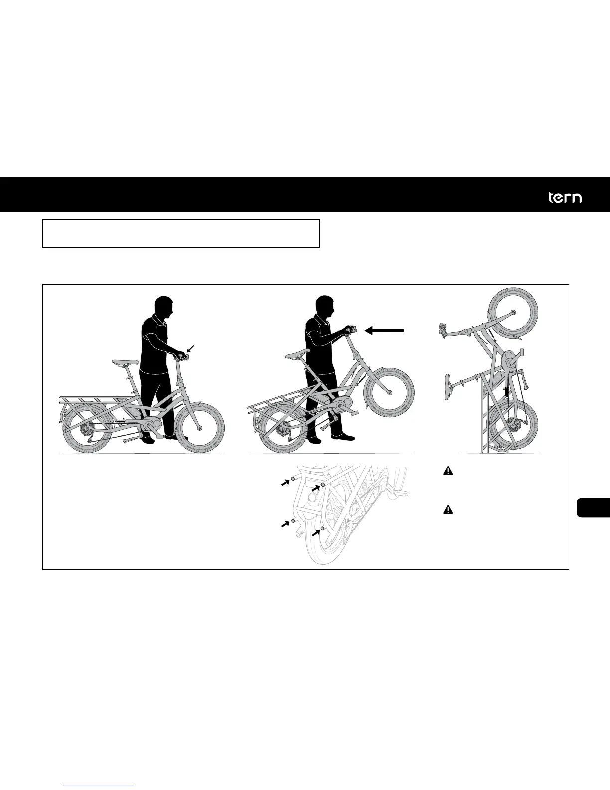 La TERN GSD è progettata per poter essere posizionata su quattro piedini del portapacchi. In questa configurazione la bicicletta ha un piccolo
