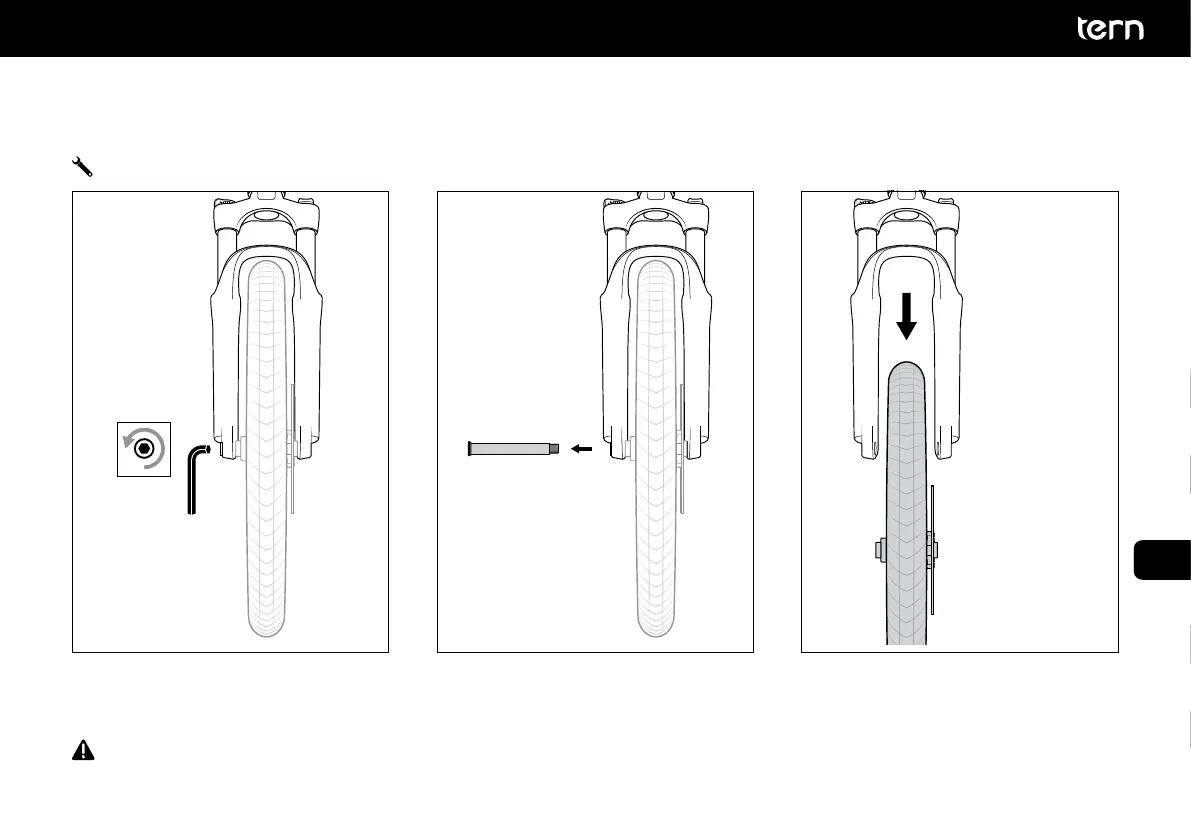 Le Tern HSD utilise un axe traversant de type Thru-axle pour la roue avant. Cette construction est beaucoup plus solide
