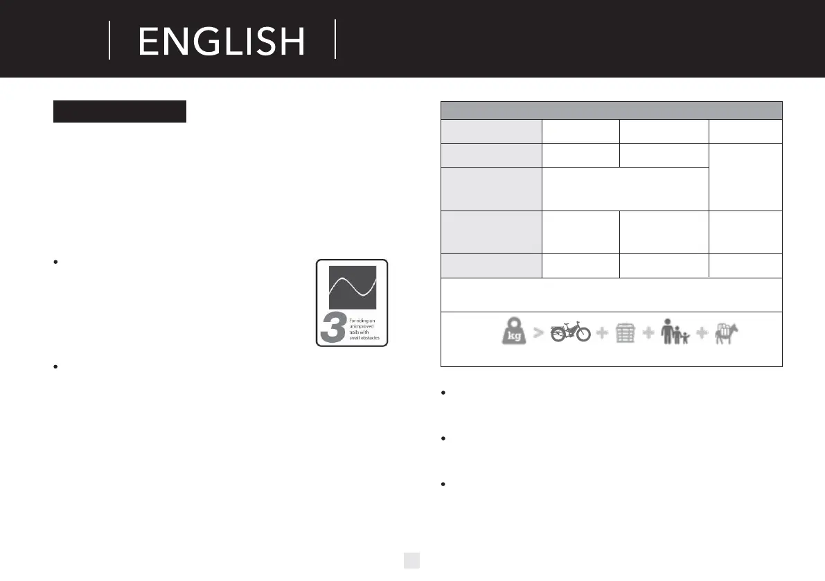 ** Total weight (Rider + Bike + Passengers + Accessories + Other Cargo) cannot exceed the max