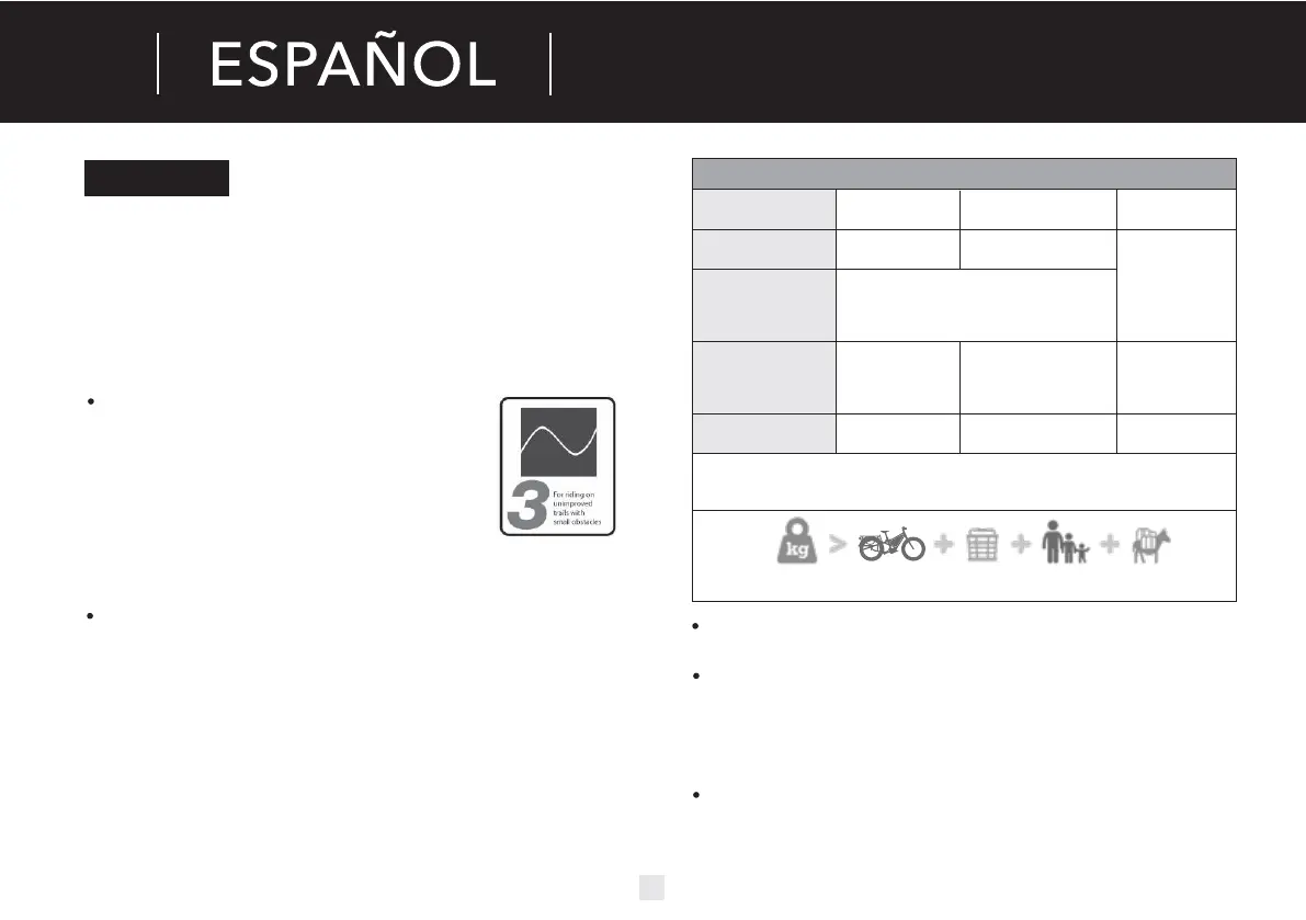 ** El Peso Total (Ciclista + Bici + Pasajeros + Accesorios + Otras cargas) no deberían