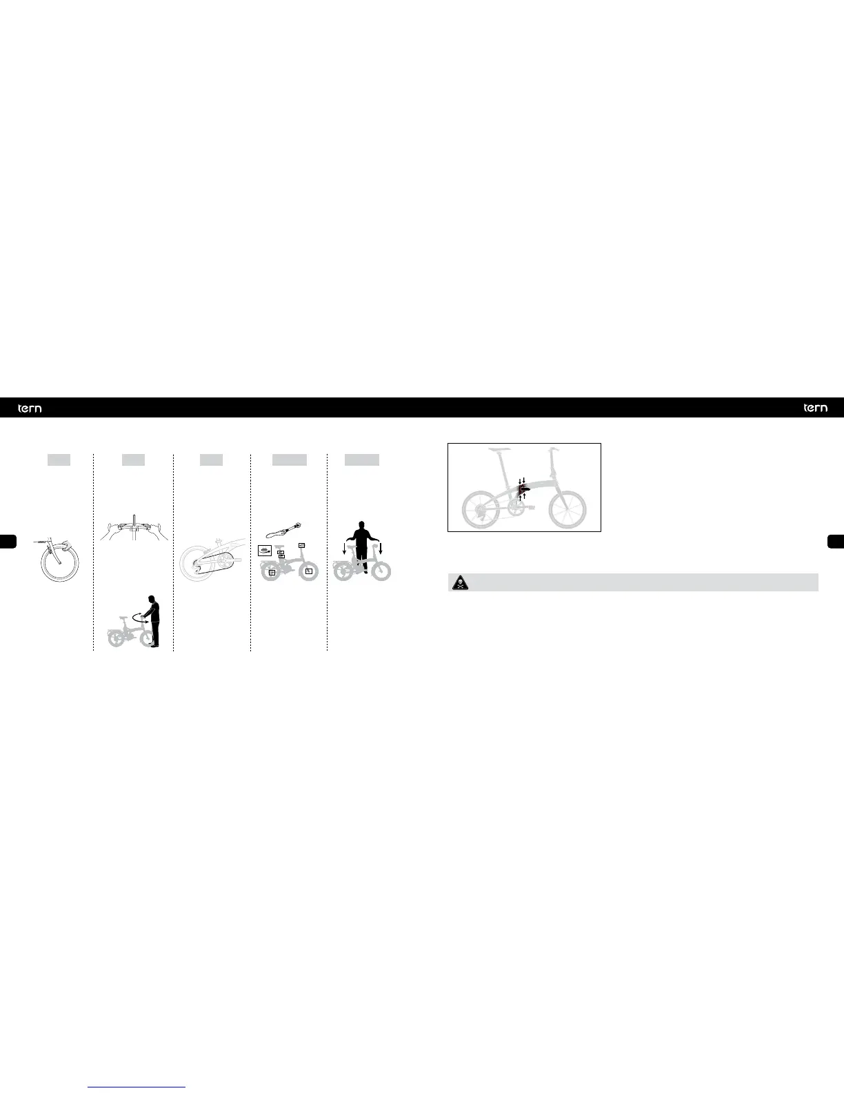 • Asegúrese de que sus ruedas estén firmemente asentadas levantando cada extremo de la bicicleta y golpeando la rueda hacia la abertura