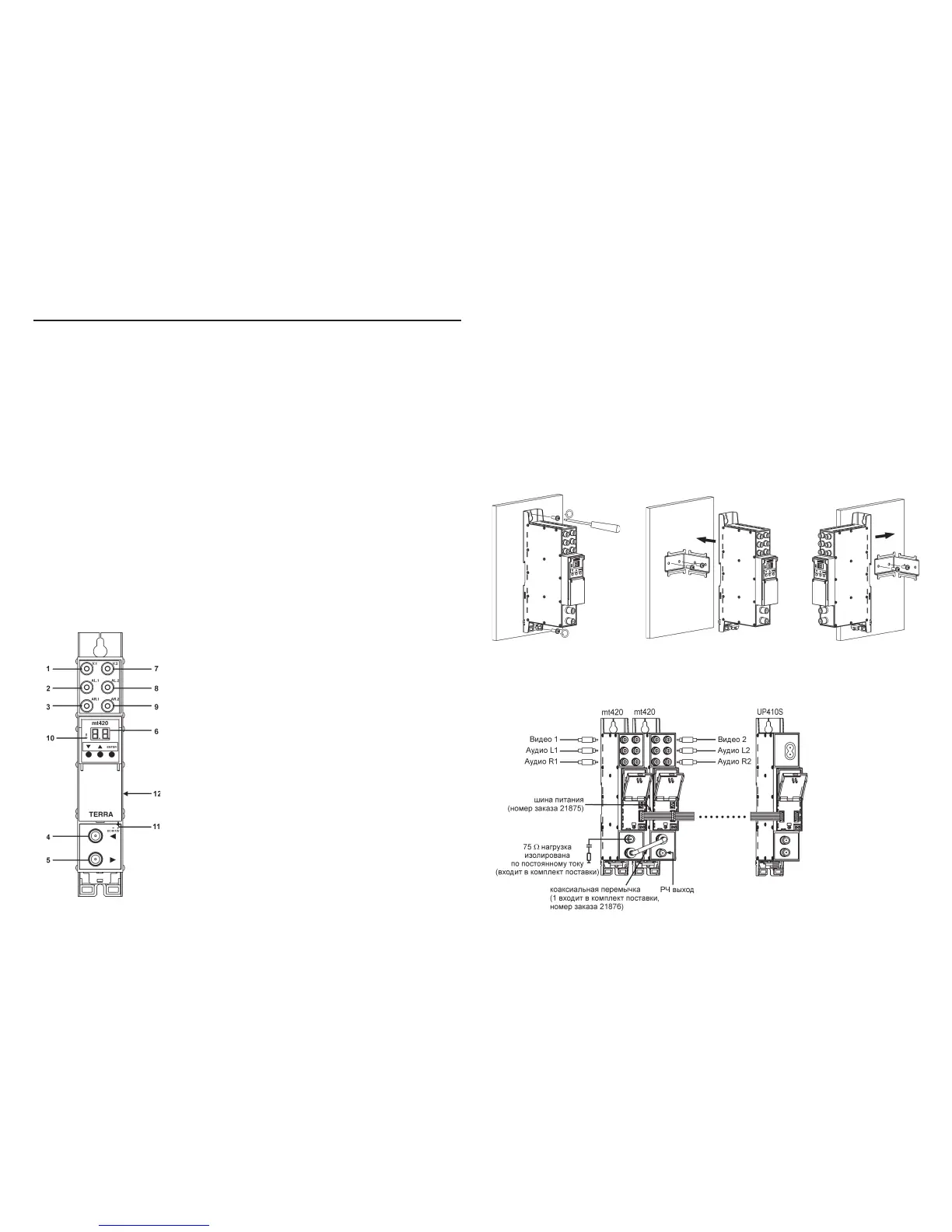 Крепление модулятора к ''DIN rail'' планке смотрите на странице 3.
