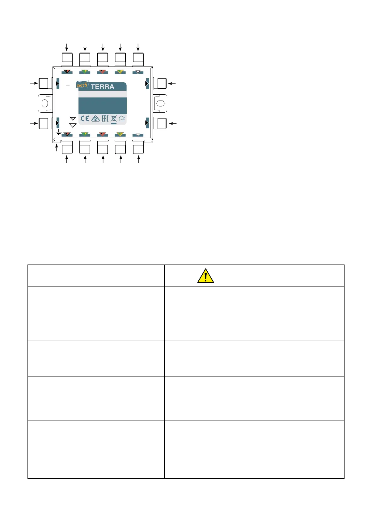 Fissare il multiswitch in posizione ed eettuare I collegamenti, prestando attenzione agli ingress e alle indicazioni per gli