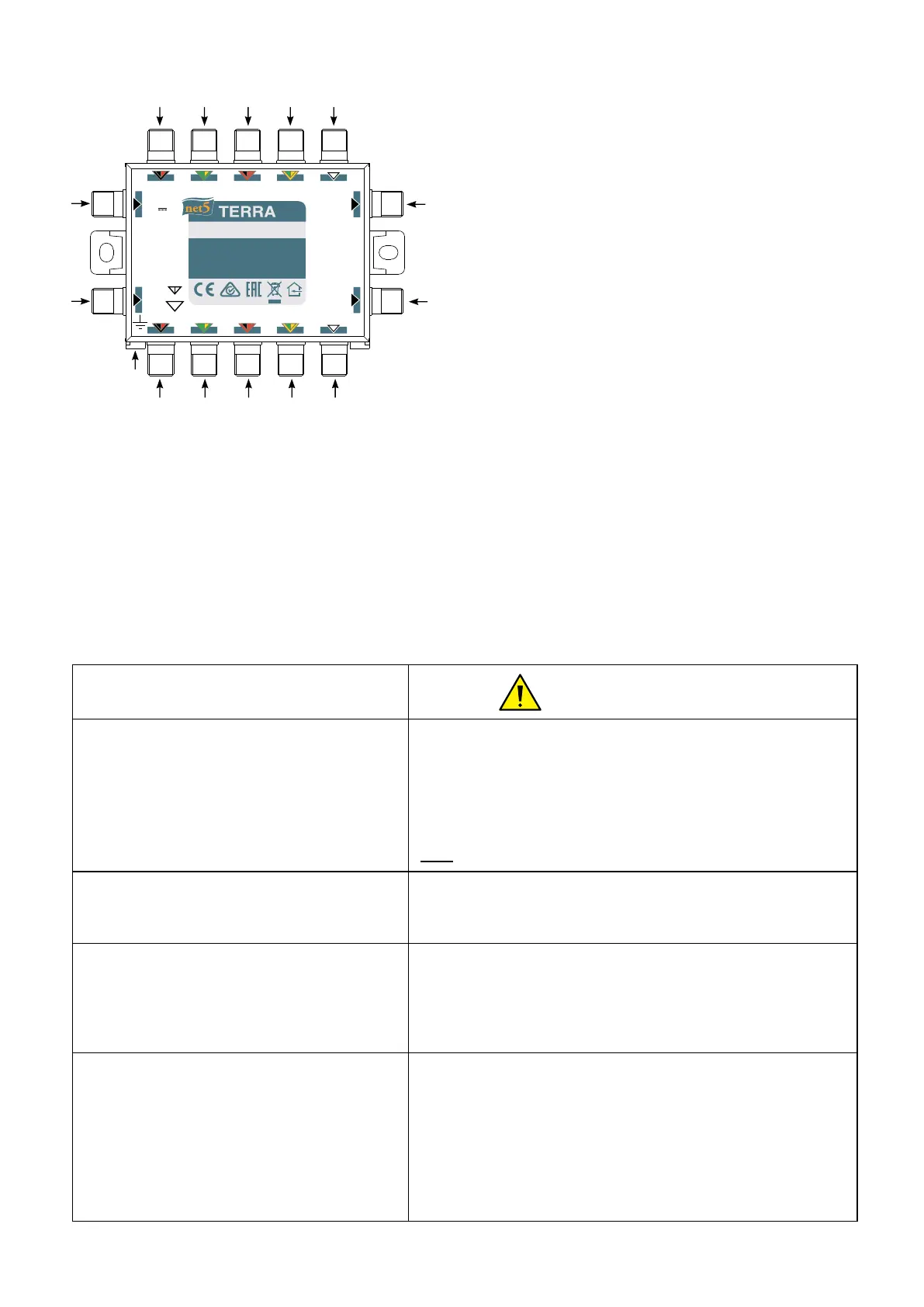 outputs marking), connect the isolated 75 Ω loads to the unused RF output F sockets, power on multiswitch using one of 4