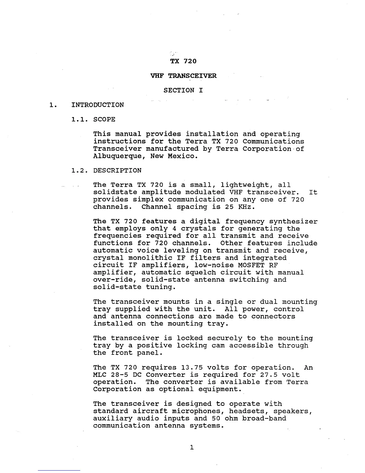 Terra TX 720 - Introduction to TX 720; Scope of the Manual; Description of the TX 720