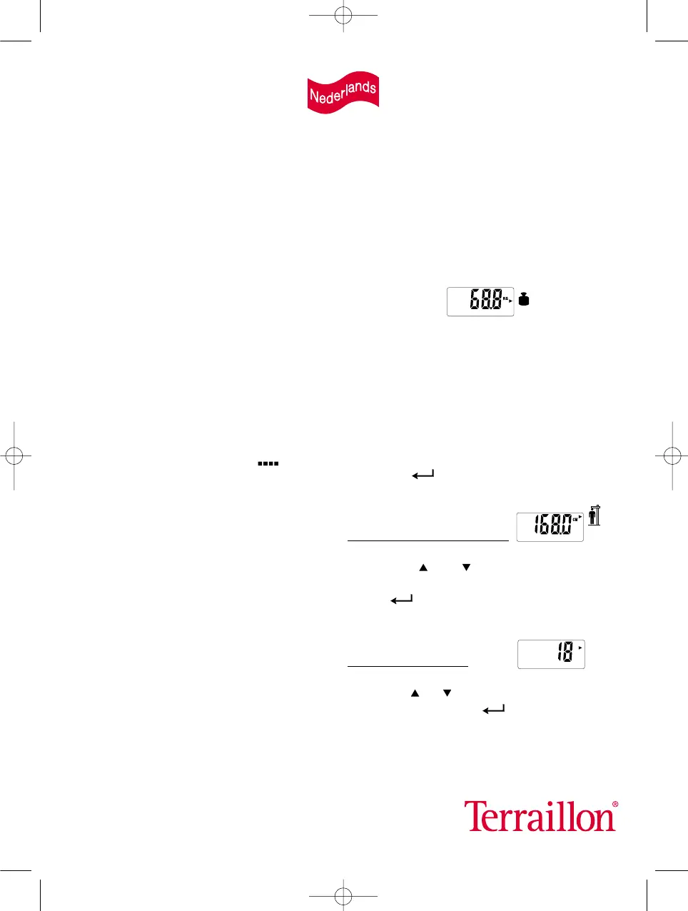 N.B.: Het verdient aanbeveling om uw gewicht