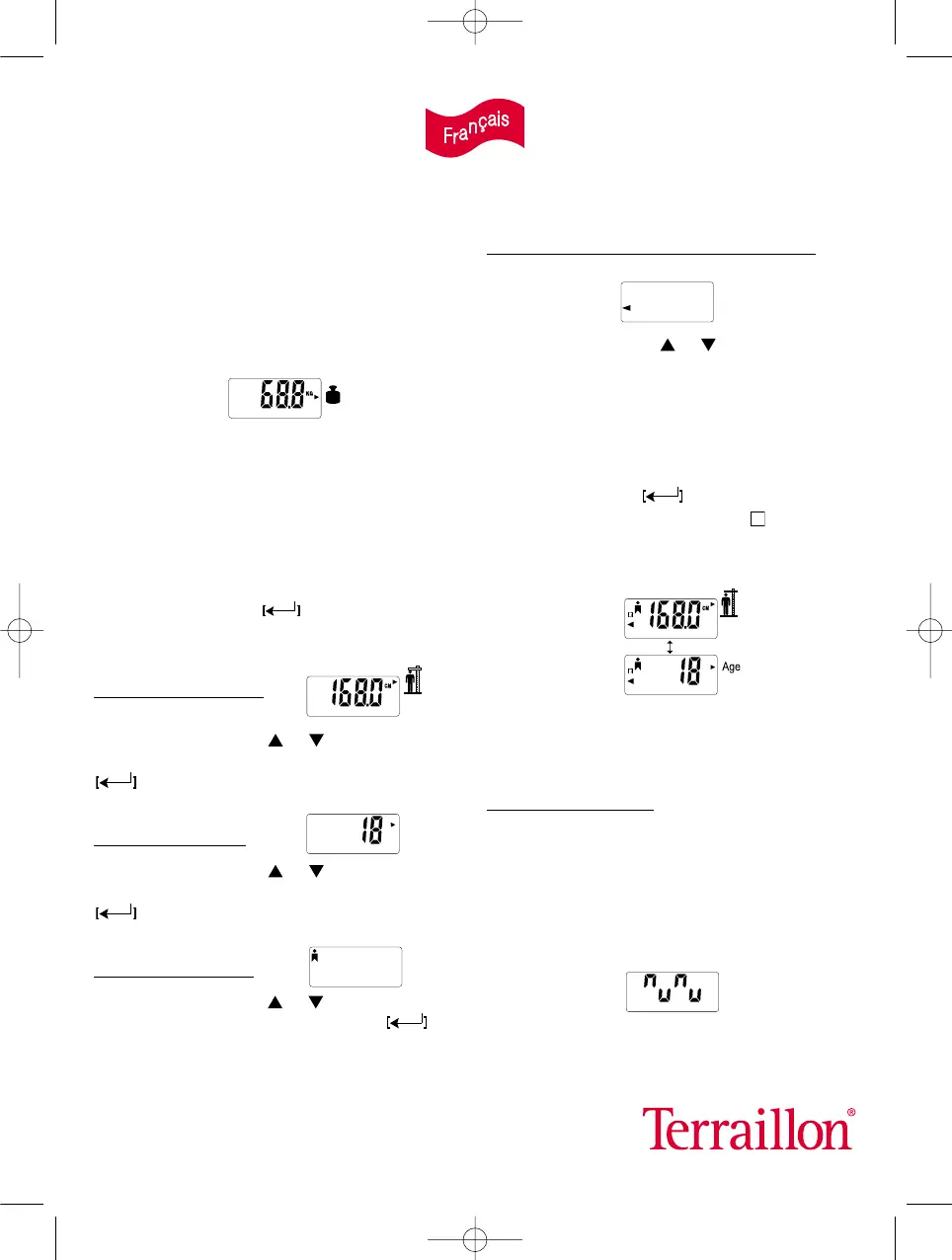 diminuer les données d’âge. Appuyer sur la touche