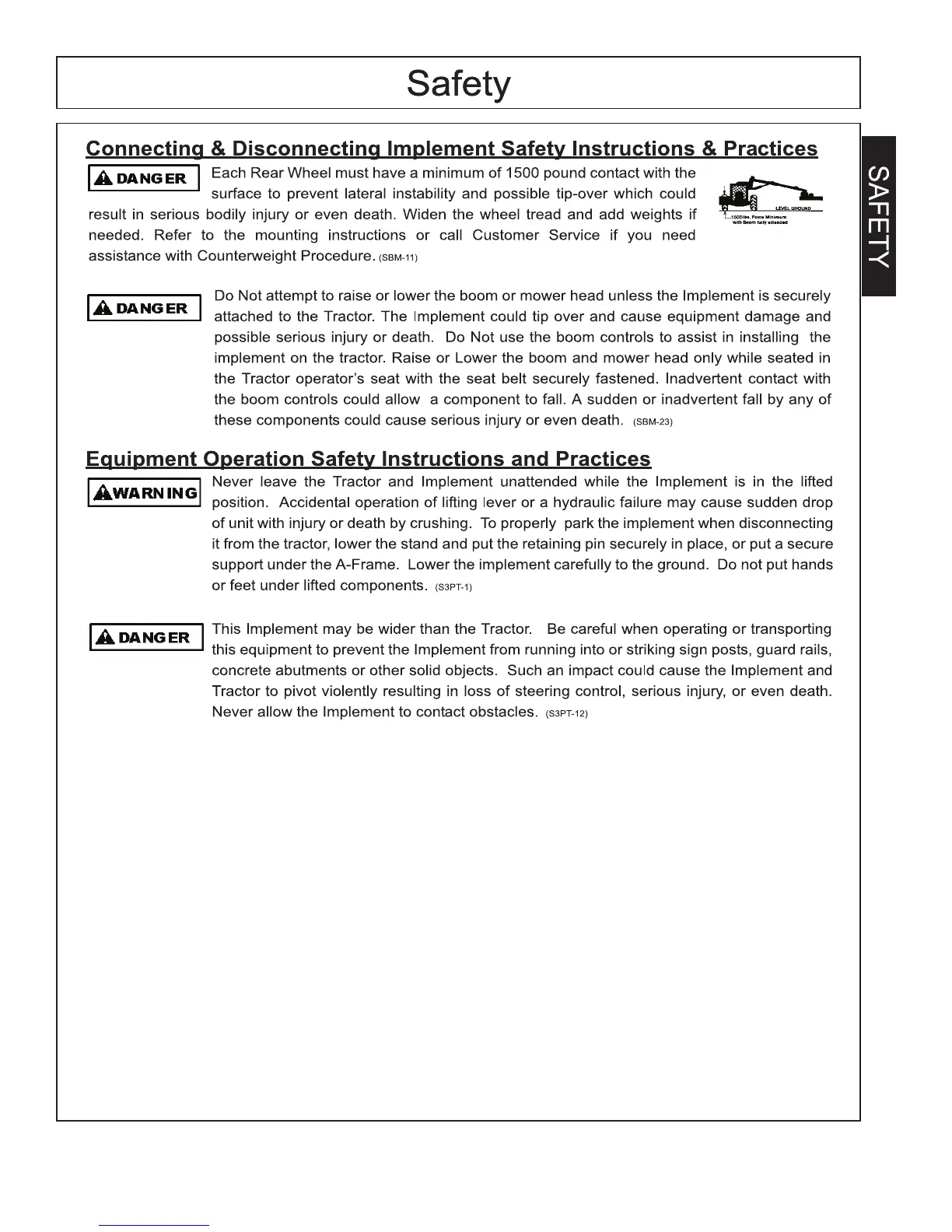 Terrain King KB21 - Connecting & Disconnecting Implement Safety Instructions and Practices; Equipment Operation Safety Instructions and Practices