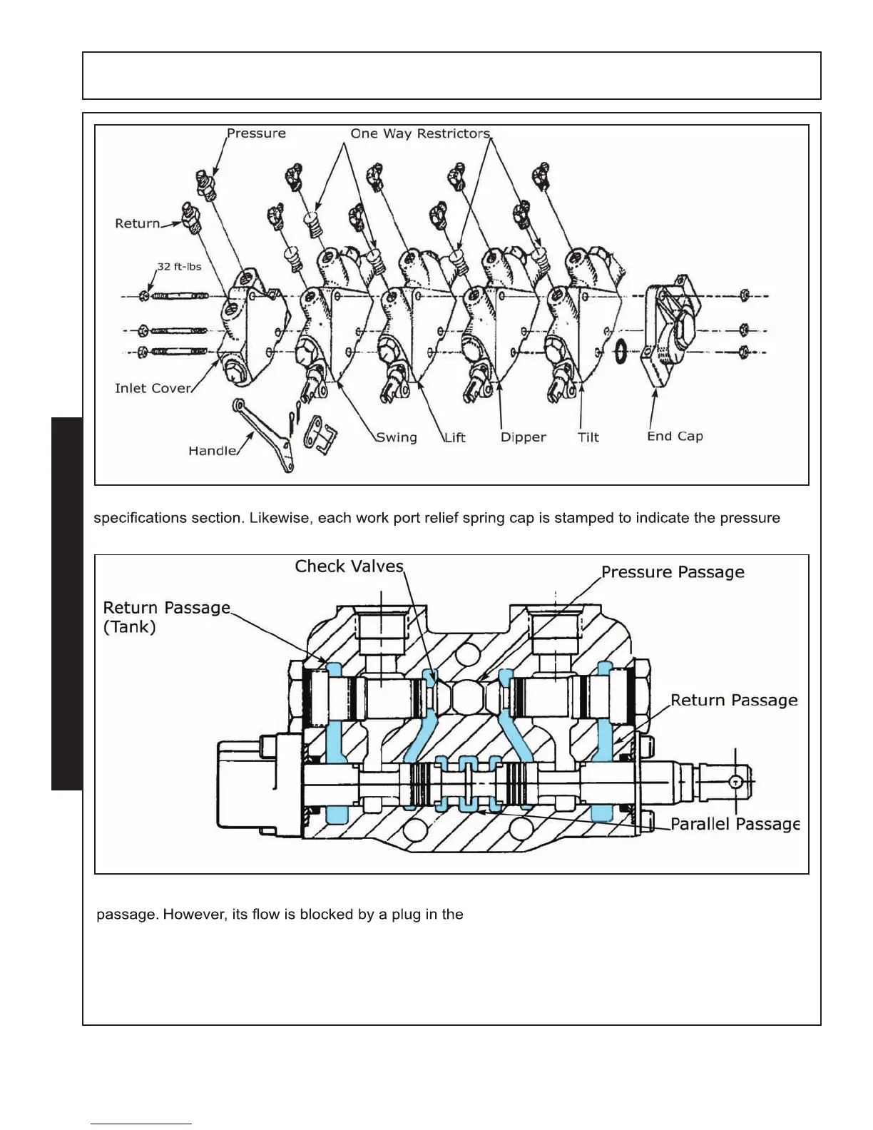 cap where it is directed to the tank passages which travel through the valve sections and back to the