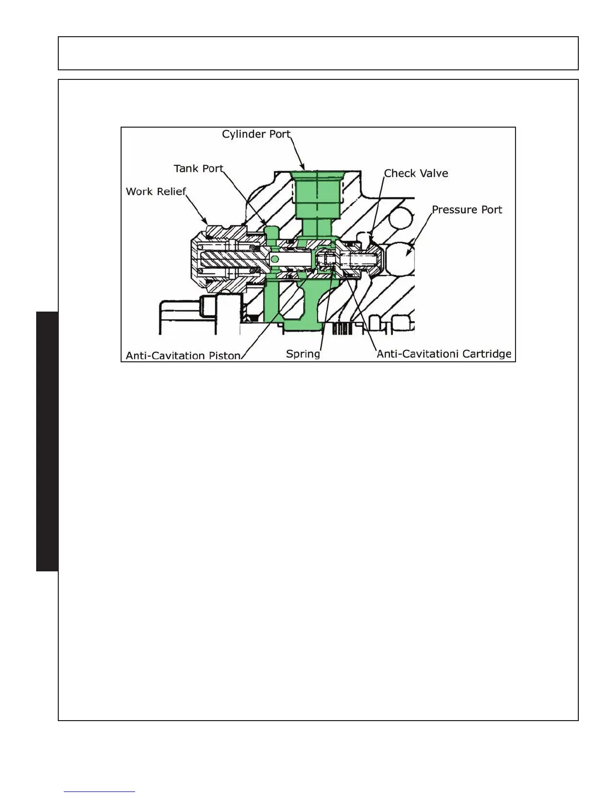 pressure and allows the oil at the tank port to travel through the work port relief piston to the cylinder