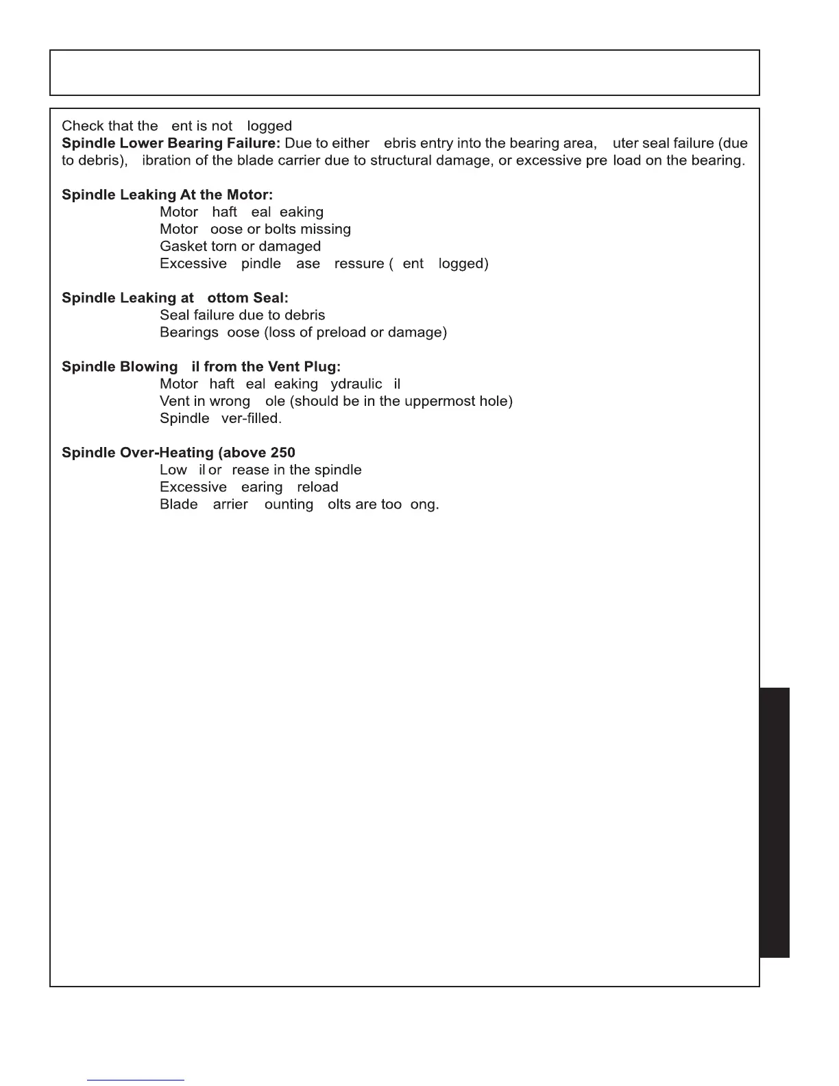 Terrain King KB21 - Spindle Leaking At Bottom Seal; Spindle Blowing Oil From the Vent Plug; Spindle Over-Heating (above 250°F)