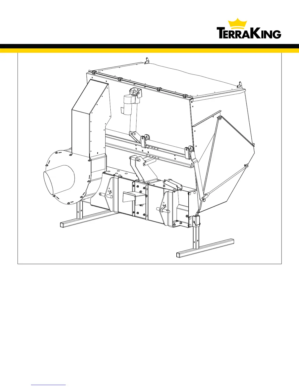 If material is blowing out of the vent on the back of the chute or side of the hopper lid of your TerraKing Lawn Mower Accessories, ensure that the hopper is not being overfilled. If it is full, empty the hopper. Also, verify that the holes in the screen of the hopper lid are not filled with material, that the hopper tailgate and its side panels do not have lodged grass preventing tight closure, and that the lid extension is free to rotate.
