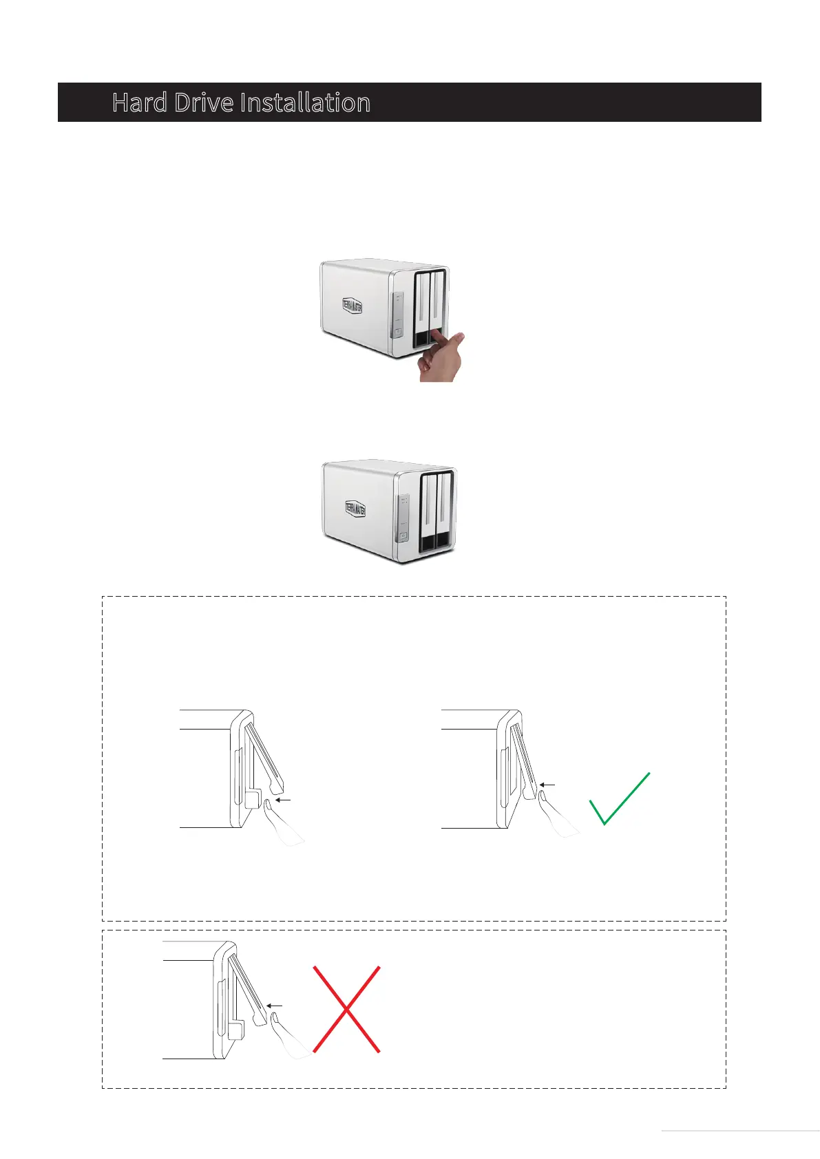 1. Pull the handle out of the hard drive tray, grasp it, and draw the hard drive tray from the