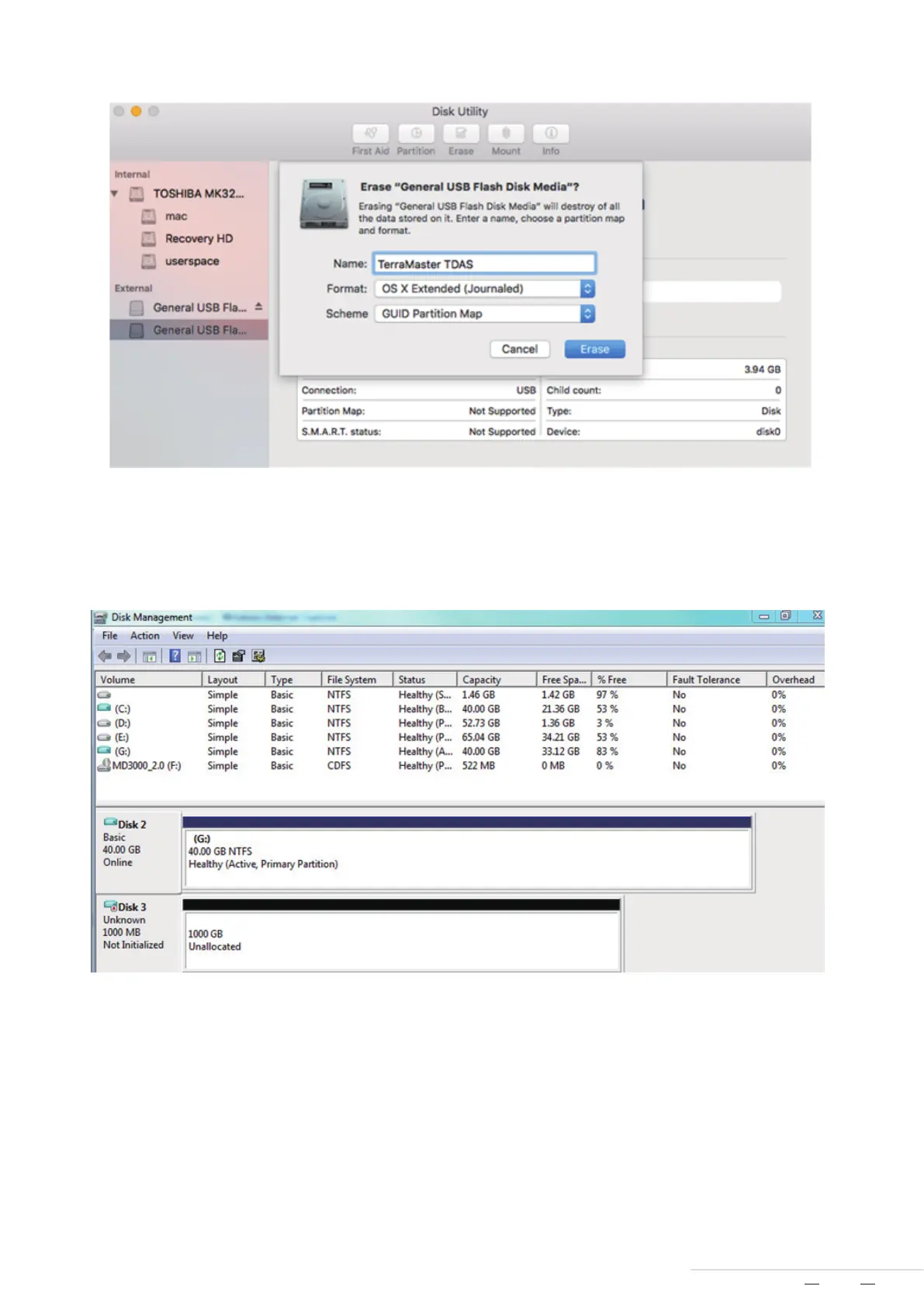 For Windows users, disk array initialisation and formatting can be completed as below: