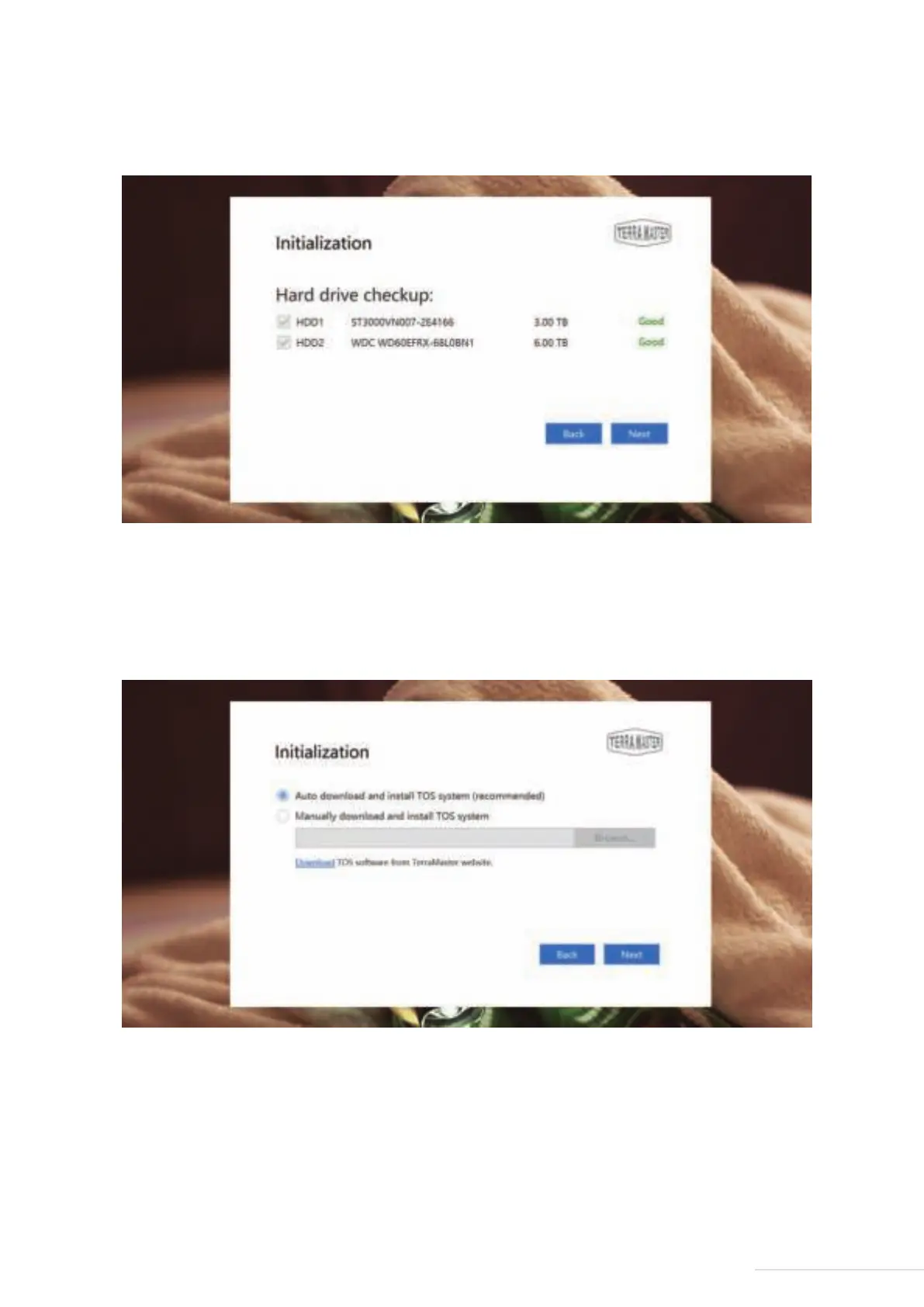 “Manual Install”, please visit TerraMaster's website to download the TOS software package from the