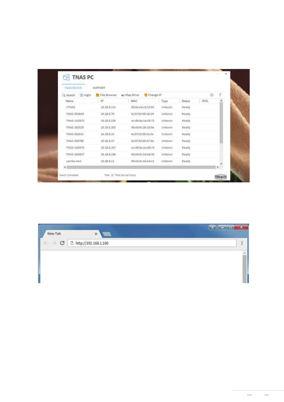 (Note: You can obtain your TNAS IP address from the TNAS PC desktop application).
