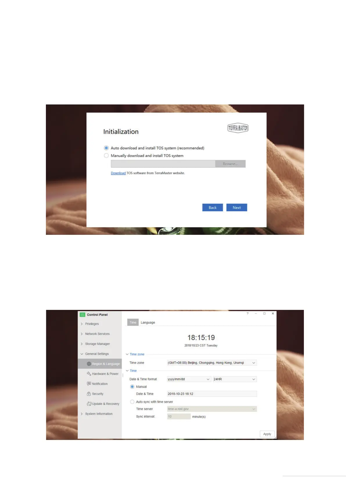“Manual Install”, please visit TerraMaster's website to download the TOS software package from the
