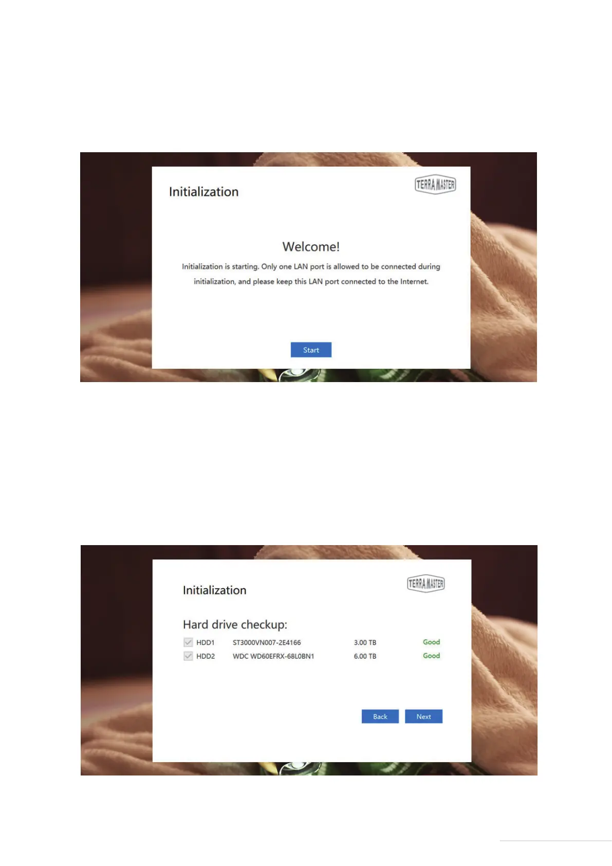 to the initialisation page. Please Click “Start” to initiate the initialisation process.