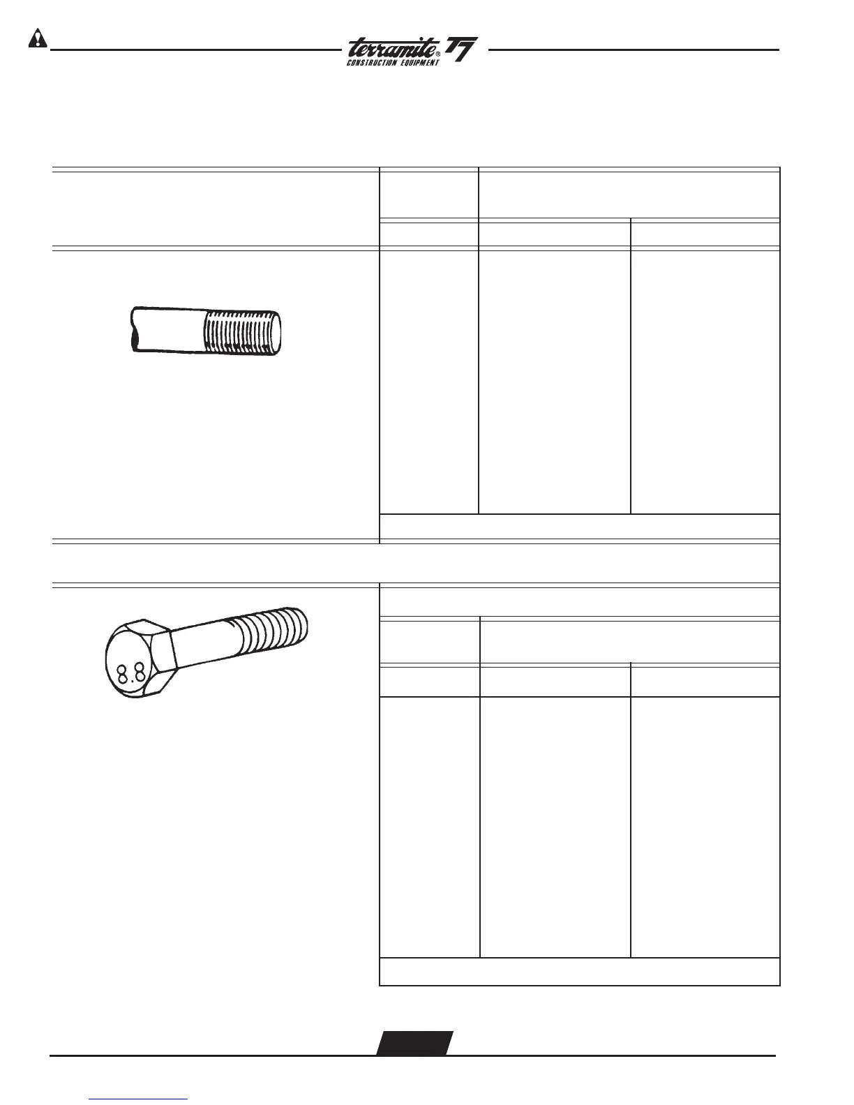 The following charts give the standard torque values for bolts, nuts and taperlock studs for SAE Grade 5