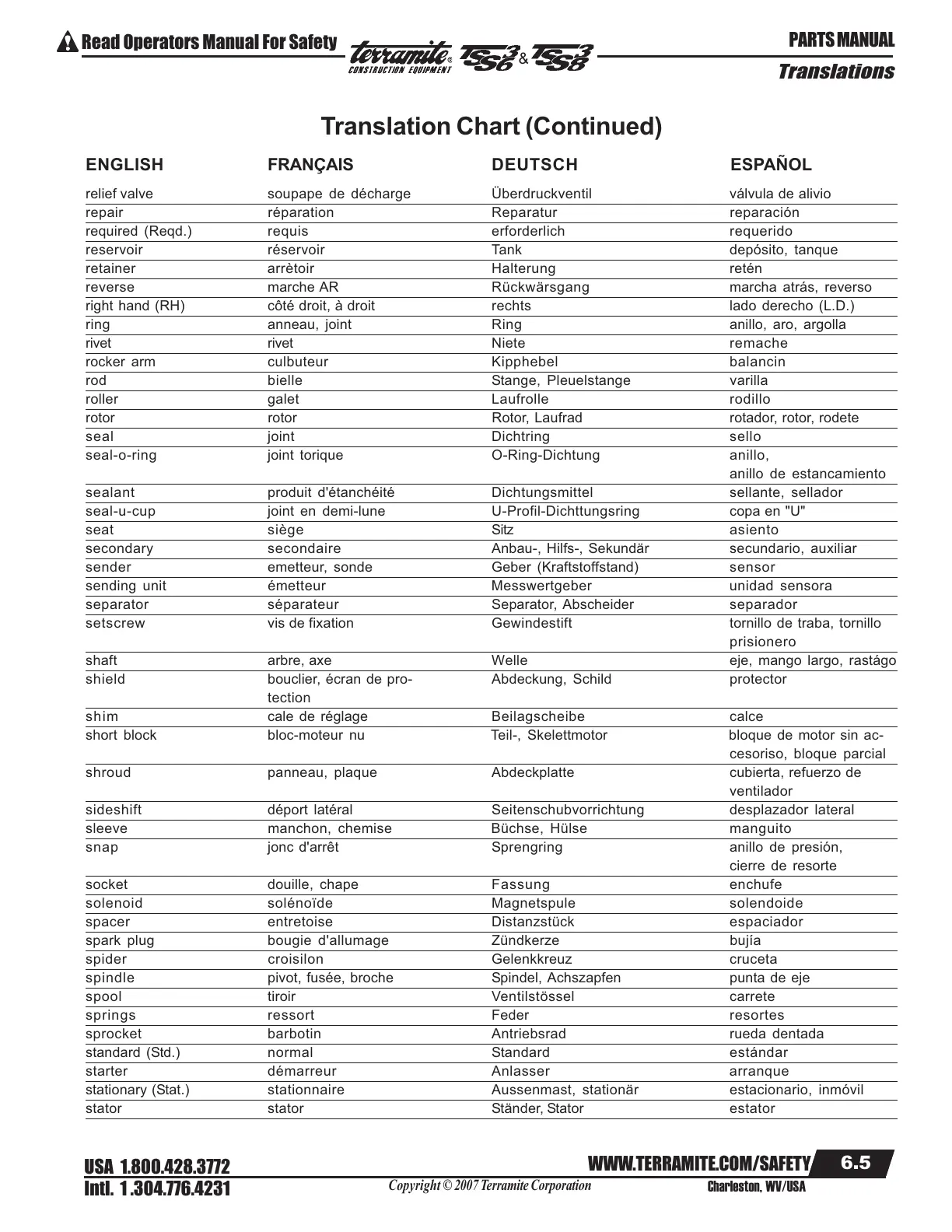 Translation Chart (Continued)