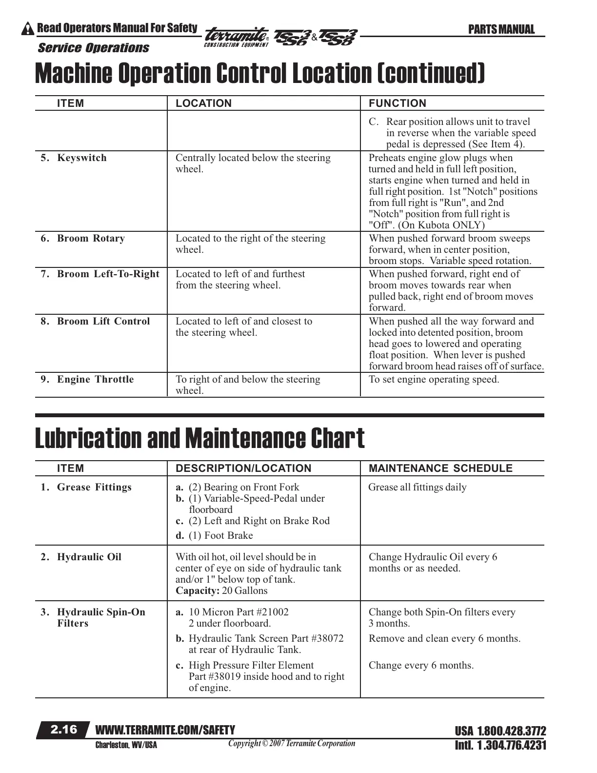 1. Grease Fittings a. (2) Bearing on Front Fork Grease all fittings daily
