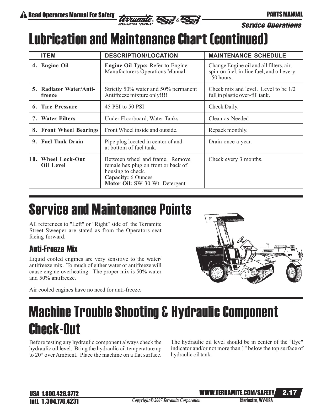 8. Front Wheel Bearings Front Wheel inside and outside. Repack monthly.
