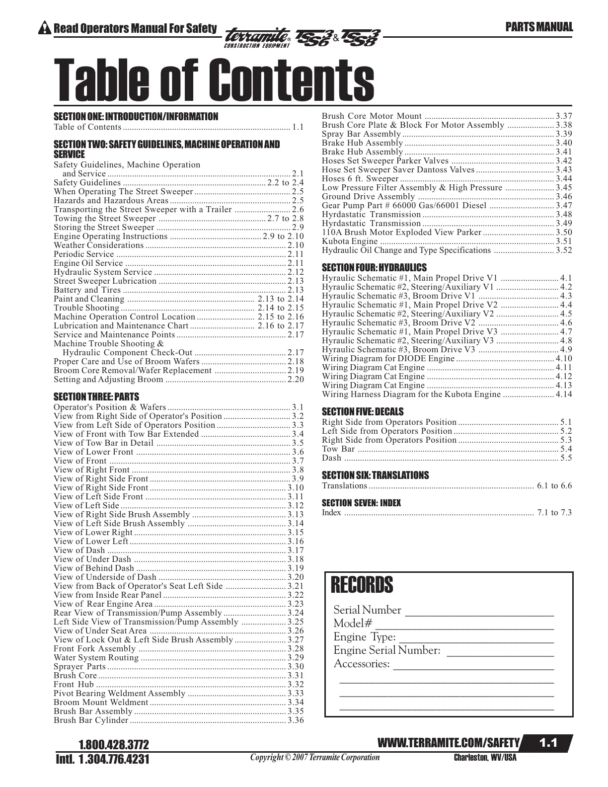 Street Sweeper Lubrication ......................................................... 2.13