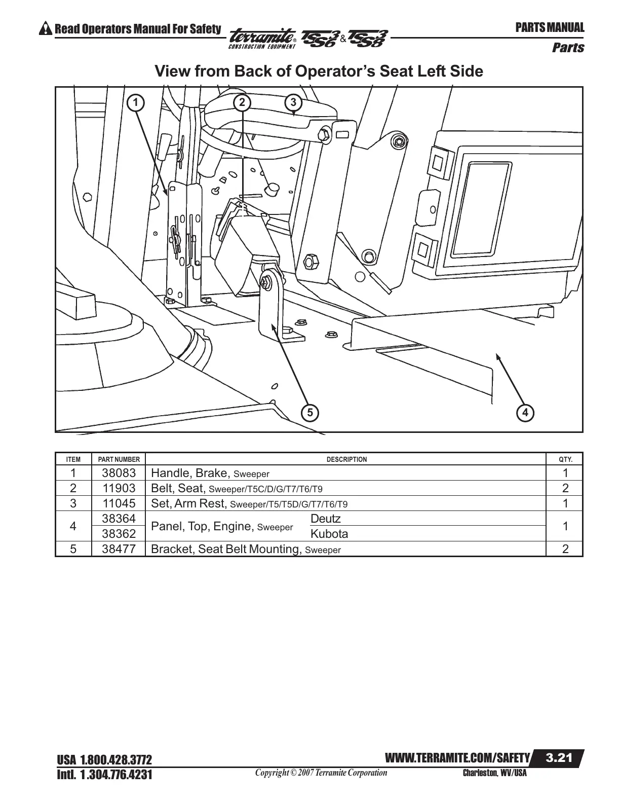 3 11045 Set, Arm Rest, Sweeper/T5/T5D/G/T7/T6/T9 1